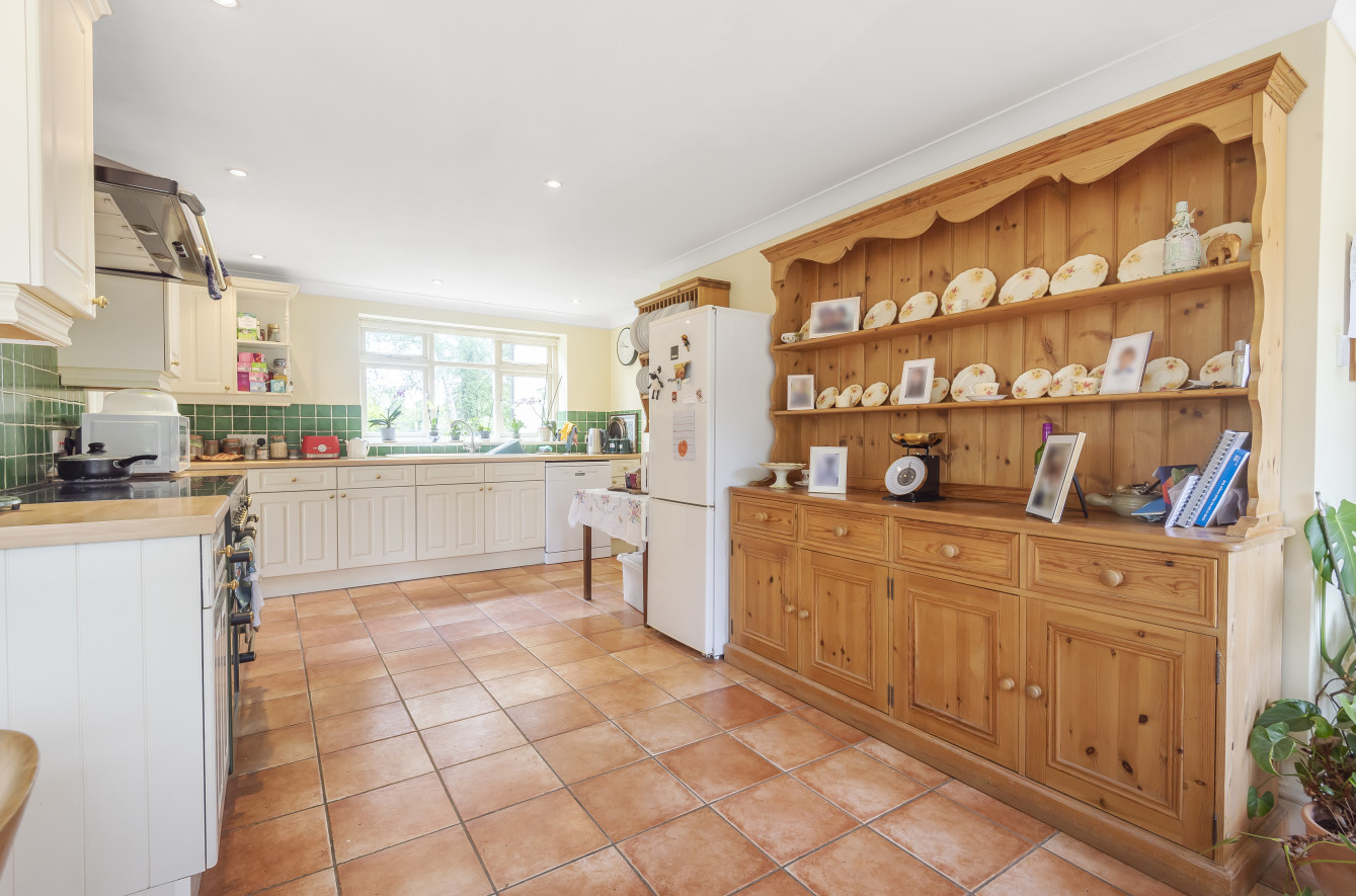 Once inside the house you are greeted by a well-maintained and spacious property. There is an entrance hall leading to the large kitchen/breakfast room on your left and a formal dining room to your right with double doors opening onto the side garden. The hallway then leads to the drawing room, WC and onto the delightful triple aspect family room with open fire and double doors also opening onto the side garden.