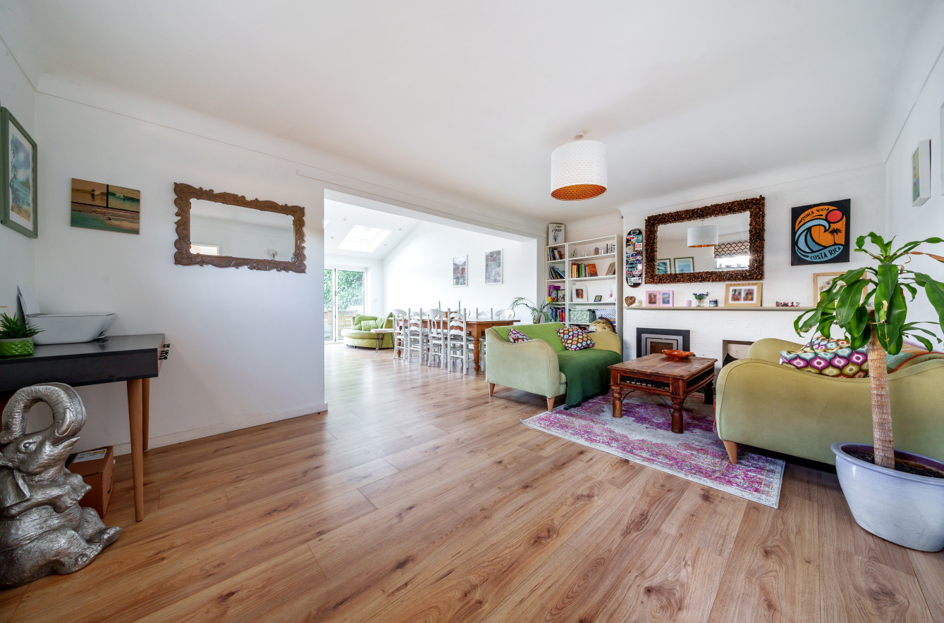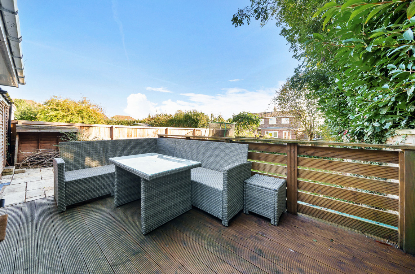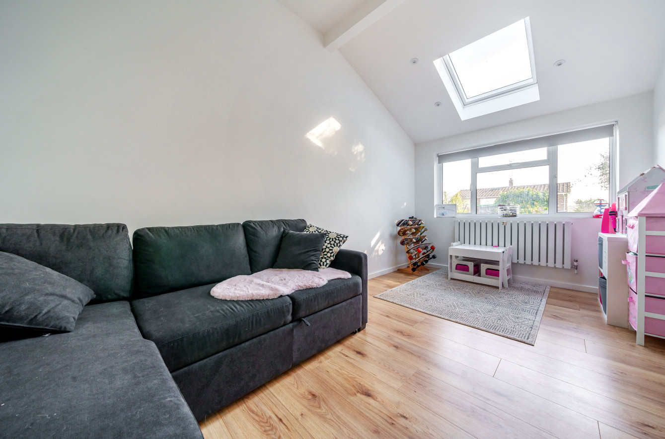 The ground level features a convenient downstairs cloakroom, a contemporary well-equipped kitchen, an impressive open-plan sitting and dining area with skylights, and bifold doors leading to the rear garden. Additionally, there is a separate study or family room with its own skylight, which could be utilized as a further guest bedroom. The first floor accommodates two generously sized double bedrooms, an additional single bedroom, and a modern family bathroom. The property's frontage offers ample driveway parking and includes a single garage with a rear workshop area. The private enclosed rear garden boasts a patio and raised decking, providing an ideal setting for outdoor dining.