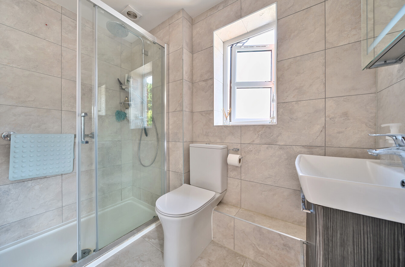 Outside, the property boasts ample off-road parking for up to four vehicles. A side gate provides access to the upgraded rear garden, which has been thoughtfully landscaped by the current owner. With a new patio terrace and low-maintenance artificial lawn, it offers a superb space for outdoor relaxation and entertaining.