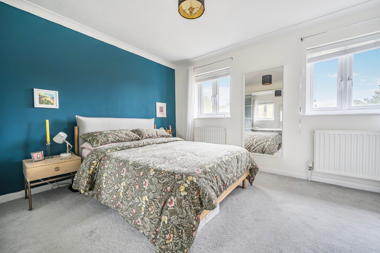 Upstairs, the home continues to impress with two well-proportioned double bedrooms, with bedroom one displaying generous built-in storage. Both bedrooms are served by the contemporary family shower room. Further storage is provided by a landing cupboard, two understairs cupboards, and an additional cupboard located off the sitting room.