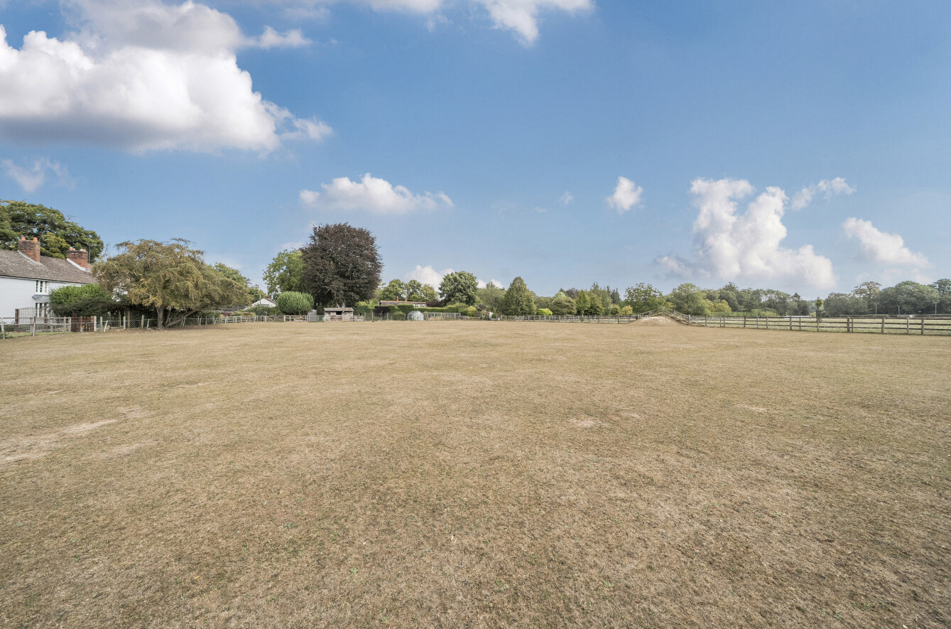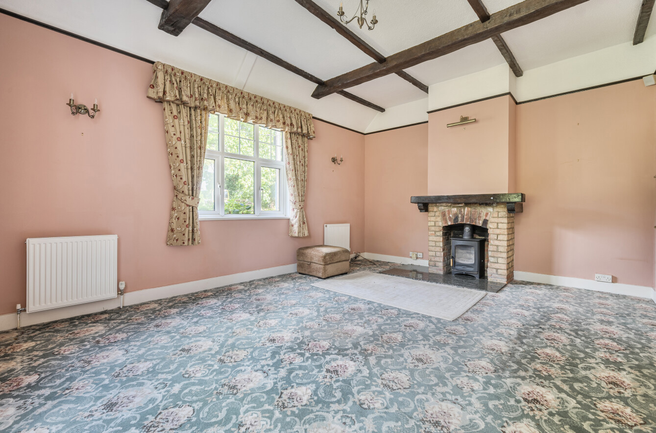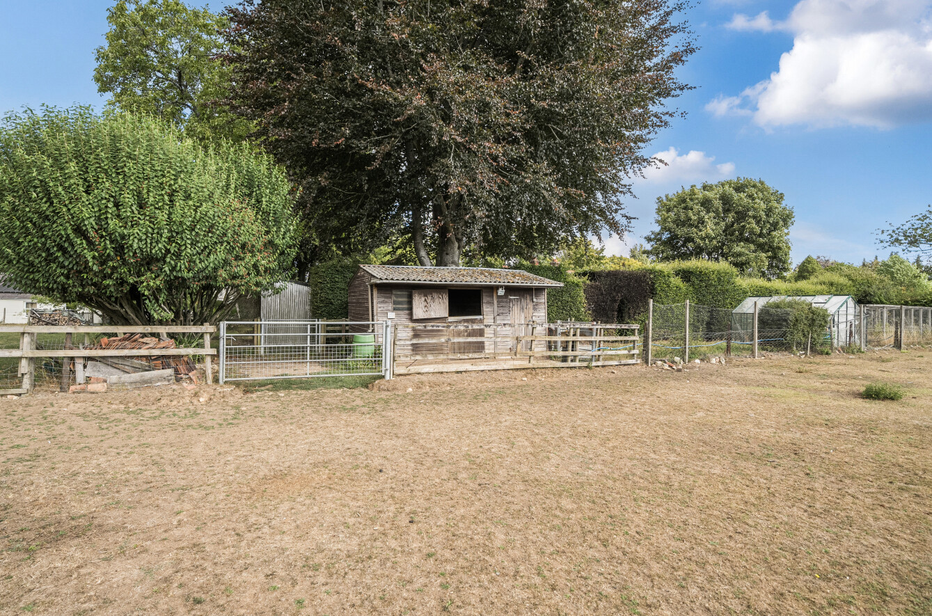 Nestled on a private plot set back from the thoroughfare, the home enjoys excellent privacy and the benefit of a paddock to the rear. Given the property’s current condition, it is likely that high street lending options will be limited. Accessed via a private road, Meadow Lodge sits on a generous plot of approximately 1.5 acres, including the paddock. The main house provides around 1,660 sq. ft. of accommodation, with a further 388 sq. ft. offered by a detached double garage—creating fantastic scope for extension or redevelopment, subject to the relevant planning consent. The paddock also enjoys its own separate right of way from the road. Please note that the owners hold only limited information about the property. As such, it is being sold strictly on a “sold as seen” basis, which has been reflected in the marketing and pricing.