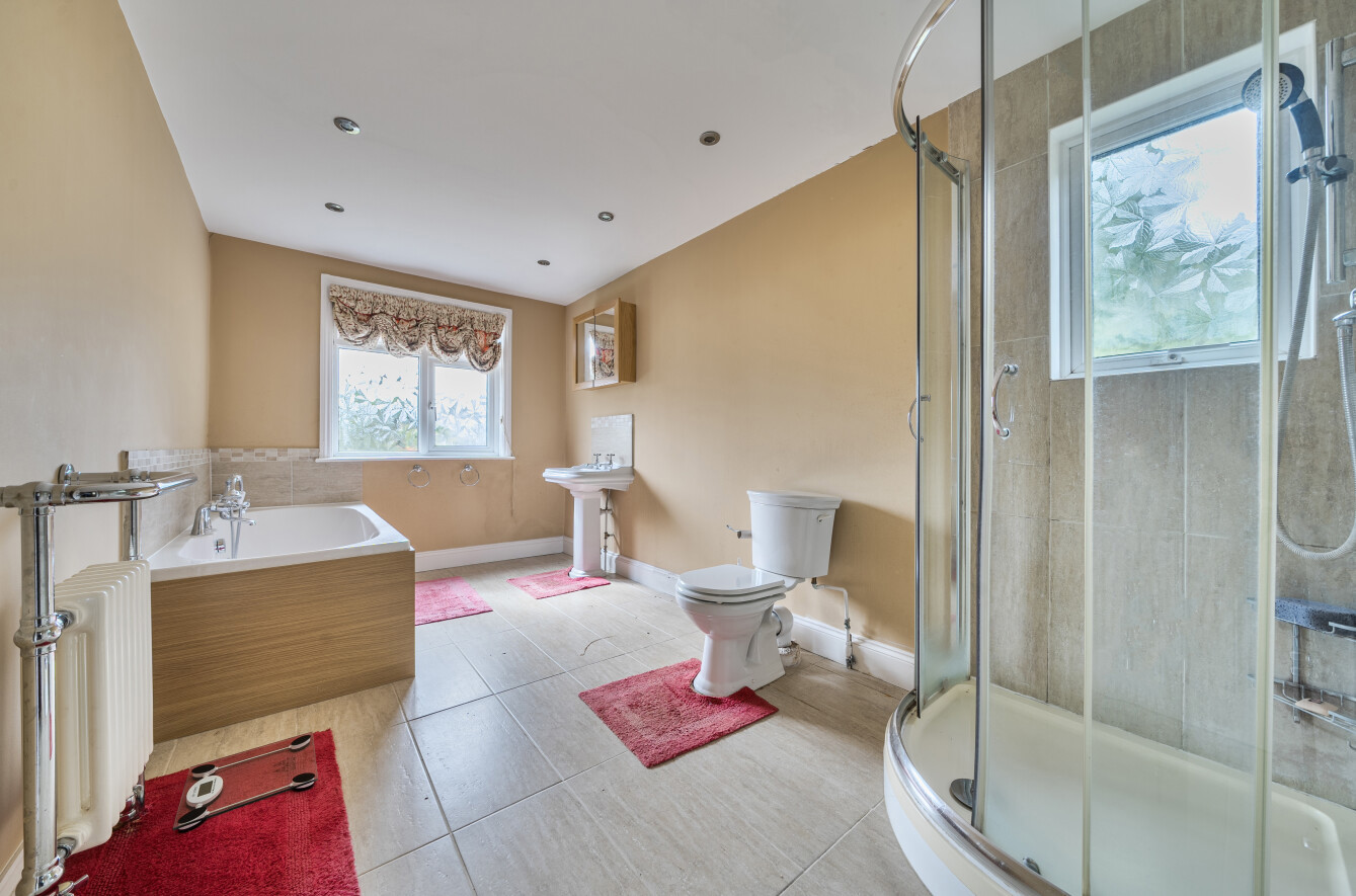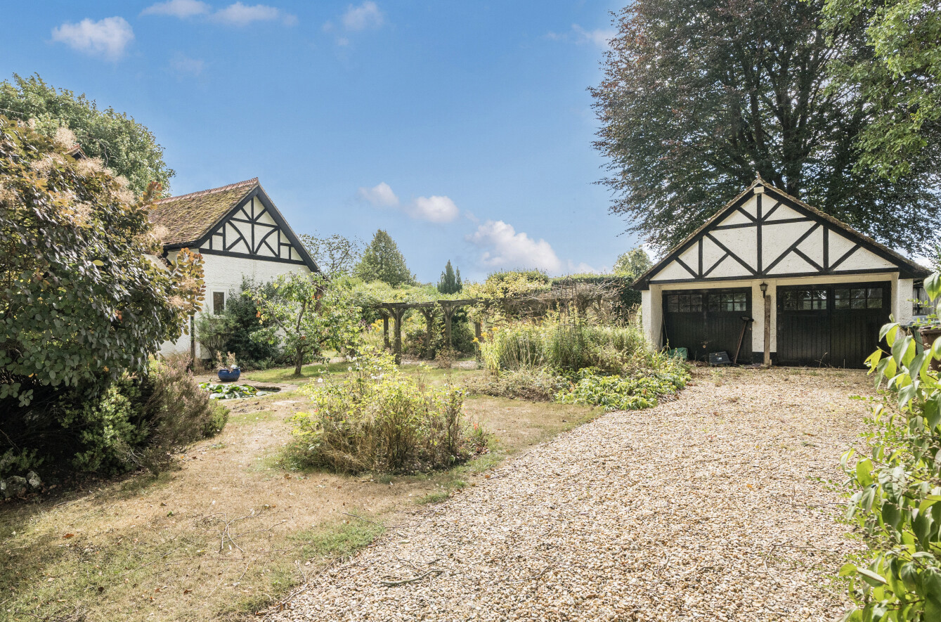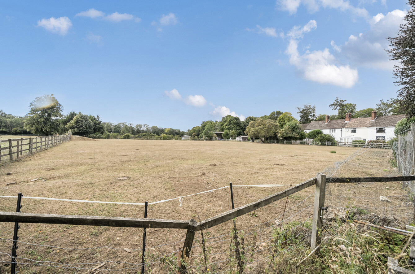 Nestled on a private plot set back from the thoroughfare, the home enjoys excellent privacy and the benefit of a paddock to the rear. Given the property’s current condition, it is likely that high street lending options will be limited. Accessed via a private road, Meadow Lodge sits on a generous plot of approximately 1.5 acres, including the paddock. The main house provides around 1,660 sq. ft. of accommodation, with a further 388 sq. ft. offered by a detached double garage—creating fantastic scope for extension or redevelopment, subject to the relevant planning consent. The paddock also enjoys its own separate right of way from the road. Please note that the owners hold only limited information about the property. As such, it is being sold strictly on a “sold as seen” basis, which has been reflected in the marketing and pricing.