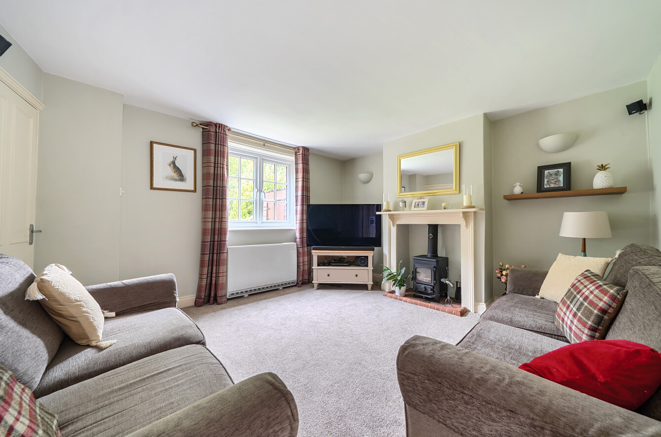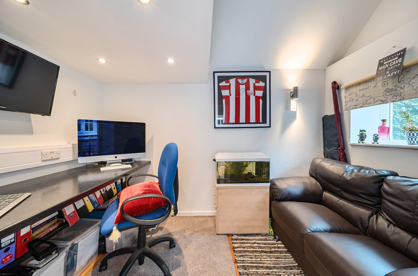 To the rear, there is a separate external office – ideal for home working. The property also benefits from excellent kerb appeal, with a driveway leading up to the house – a rare and sought-after asset in the village centre. Either side of the drive is a well-planted garden with mature borders, and a side gate provides additional access.