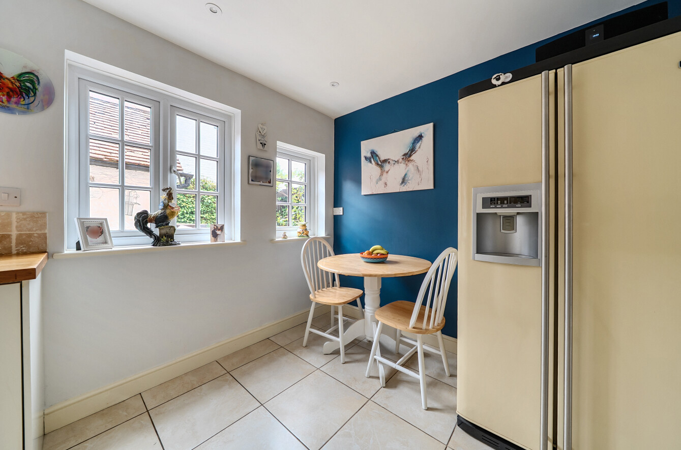 Upstairs, there are two well-proportioned double bedrooms served by a family bathroom. Outside, the property boasts a delightful enclosed private garden that wraps around the home. A patio area provides the perfect setting for alfresco dining, while a covered arbour offers a shaded retreat on warm summer days.