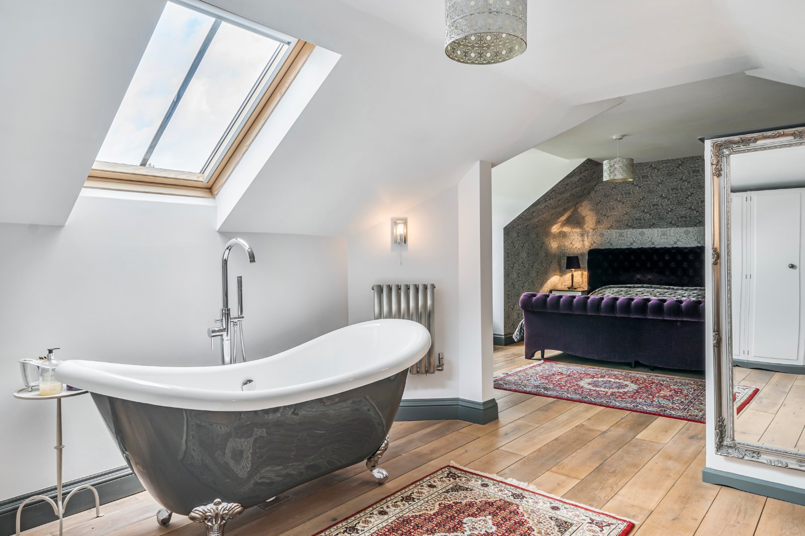 The first floor continues to impress with a modern flush-to-floor shower room, a fourth double bedroom and the palatial master bedroom, both with ample built-in storage. The master bedroom enjoys the luxury of an open-plan dressing area and striking roll-top bath. Outside, the gardens are exceptional for such a central village location.