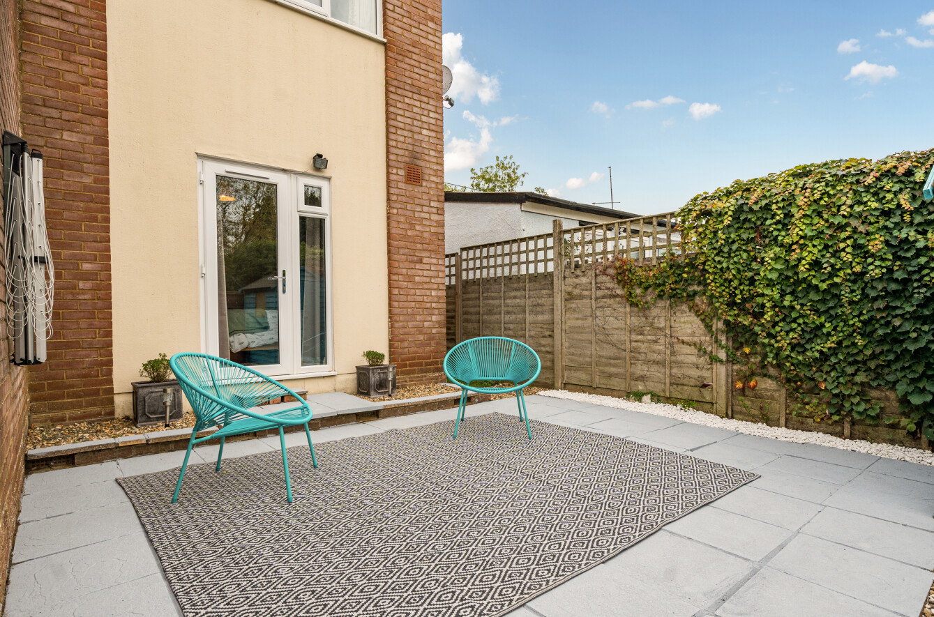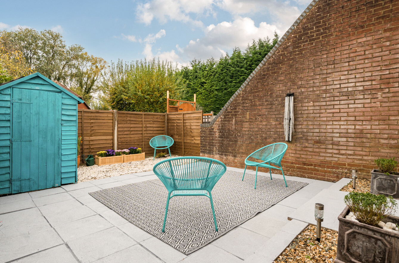 Outside, the private courtyard garden is attractively finished with paving and shingle, and includes a useful storage shed. The property also benefits from UPVC double glazing throughout, modern doors, and two allocated parking spaces to the rear. Located on New Farm Road, this home offers convenient access to two local bus routes (64 and 67) connecting both Winchester and Petersfield via Alresford town centre.