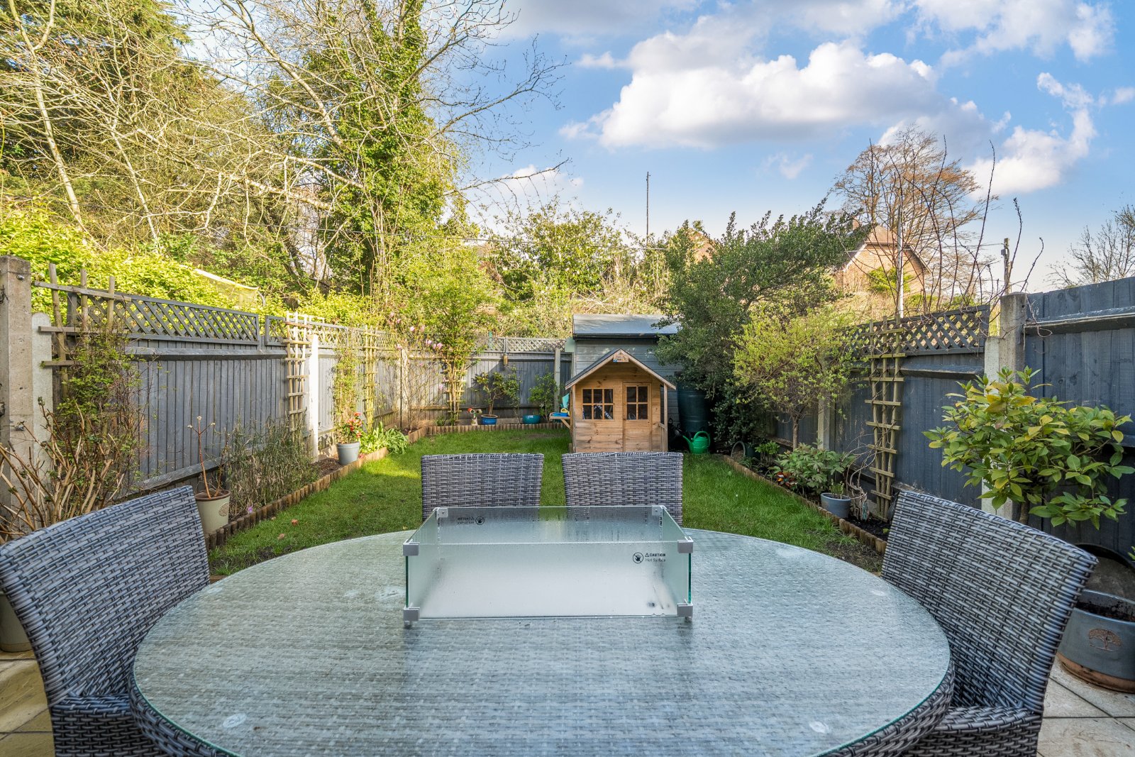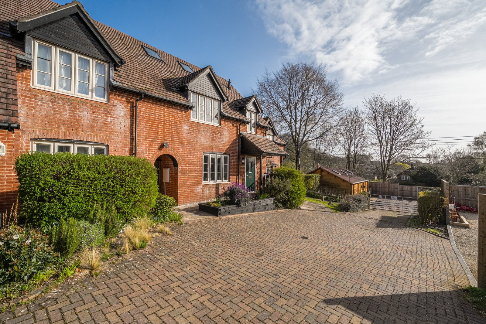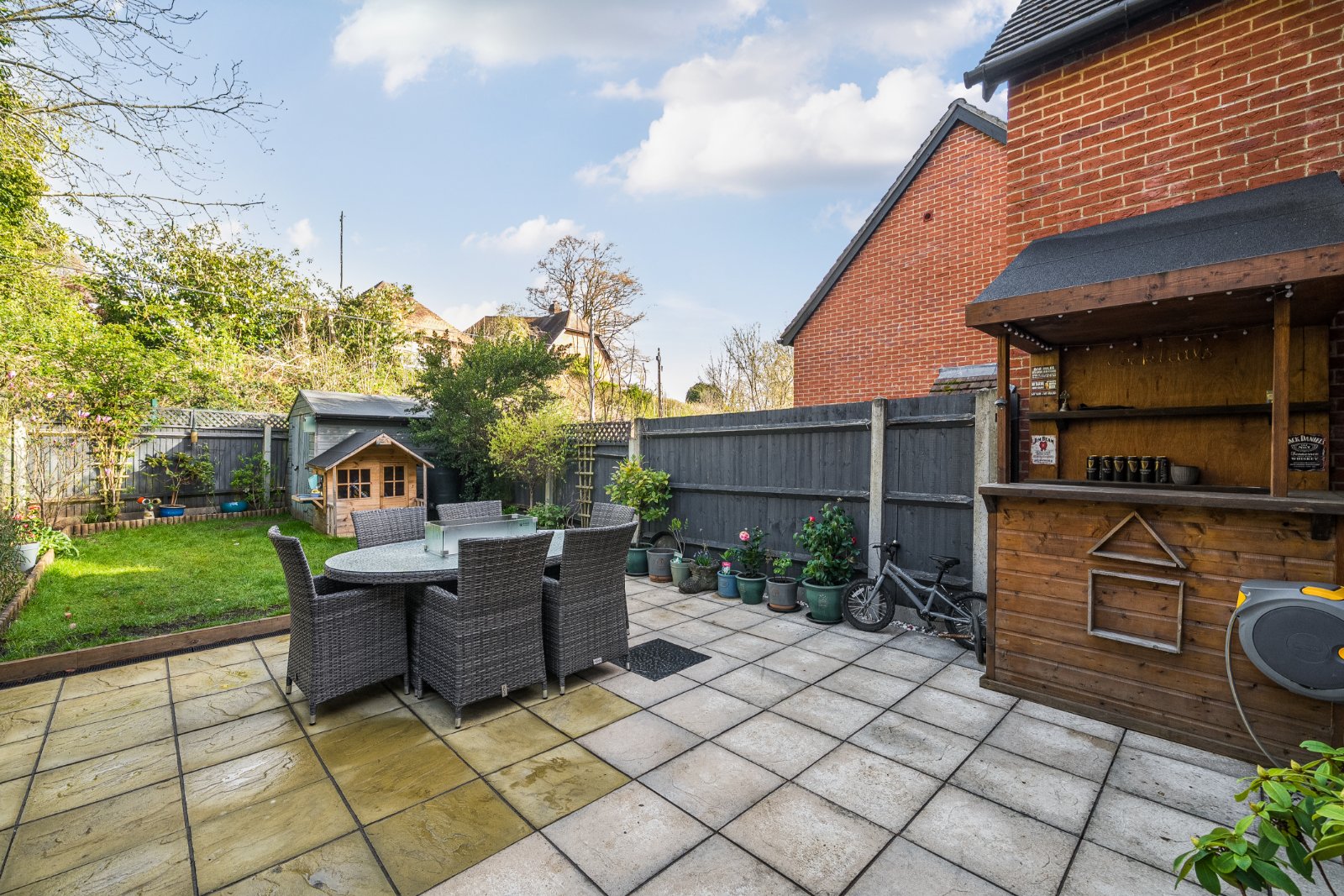 Outside, the beautifully maintained garden provides a wonderful setting for relaxing and entertaining. A generous patio area with a built-in bar creates the perfect space for summer gatherings, while the remainder is laid to lawn. A useful storage shed and convenient rear access complete this enchanting cottage garden.