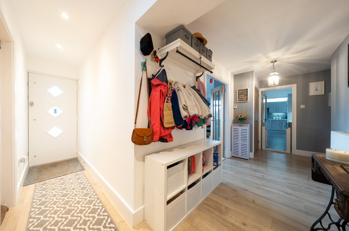 Occupying an elevated position, this beautifully finished home is presented in excellent order and ready for immediate occupation. Extended in 2023 and upgraded throughout, the property features a bright sitting room with a large south-facing window and log burner. The spacious kitchen/breakfast room, refitted in 2021, is an impressive and sociable space with French doors opening onto a south-facing deck. Leading from the kitchen are a home office, utility room, and separate WC.
