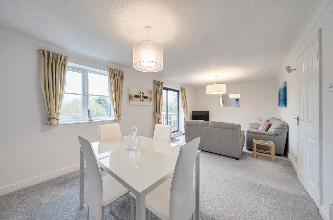 Conveniently located, it is within 400 yards of Alton station (Waterloo line) and just 0.75 miles from the town centre, with Waitrose, local footpaths, and other amenities close by. The spacious sitting/dining room, fitted with large replacement uPVC double-glazed windows, provides exceptional natural light and picturesque pond views. The apartment also features a bright white kitchen, a bathroom, and independent access to all rooms from the reception hall.