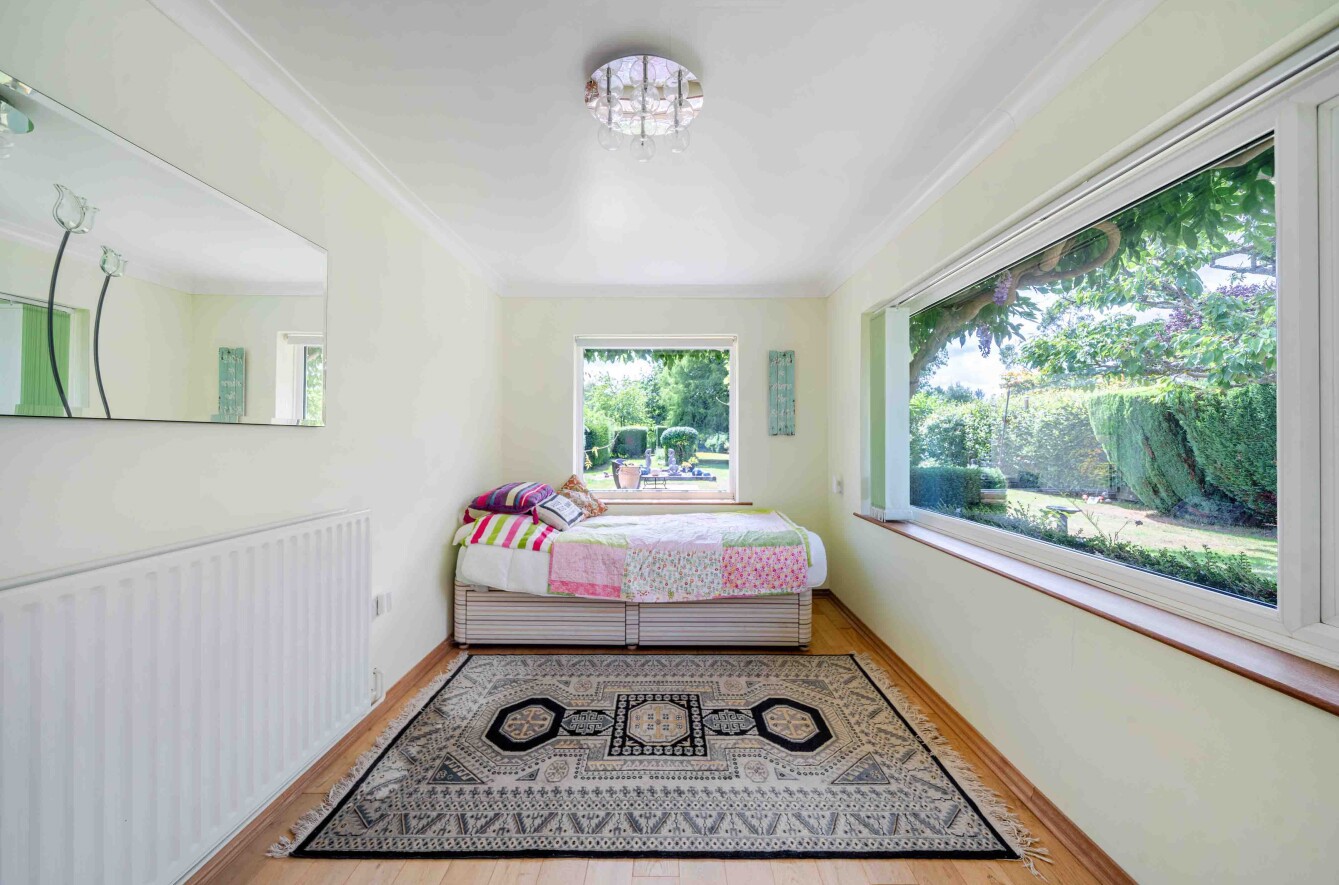 Elsewhere on the ground floor are two double bedrooms with an additional family room/bedroom 4 towards the rear overlooking the garden. A Family bathroom is available off the main entrance hall where you will find stairs to the first floor and a utility room completes the ground floor accommodation. The first floor has a spacious principal bedroom with lovely garden views to the rear and a modern, fairly recently re-fitted shower room. Landscaped and cultivated with thought and creativity, the grounds boast vibrant planting, mature trees, and a large expanse of sweeping garden merging seamlessly with the adjacent paddocks and framing tranquil rural views—a true haven of nature and privacy.