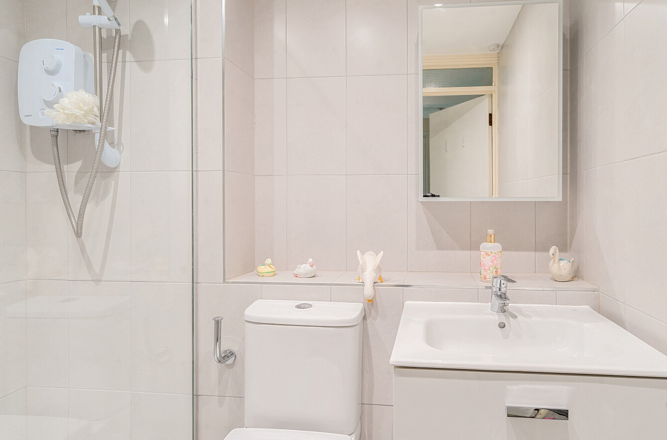 The interior has been tastefully renovated and features a spacious double bedroom with a modern shower room, and a bright living and dining area that enjoys charming garden views. The kitchen is well-equipped and thoughtfully laid out, while electric heating, double glazing, and generous storage throughout ensure comfort and practicality.