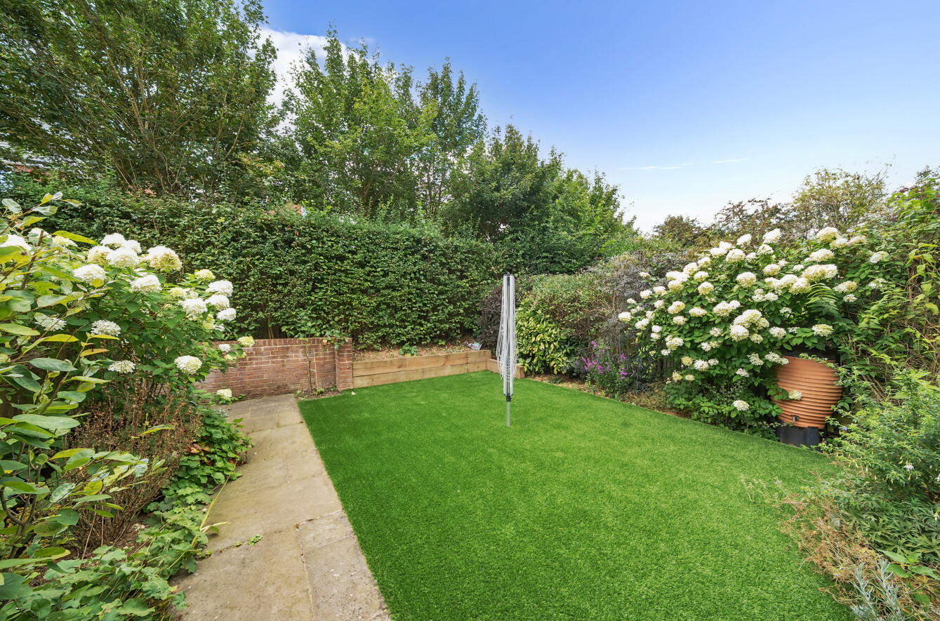 Outside, the rear garden is mainly laid to lawn with a paved patio area — perfect for morning coffee or summer evenings with friends. A garage with light and power is located in a nearby block, along with allocated visitor parking.