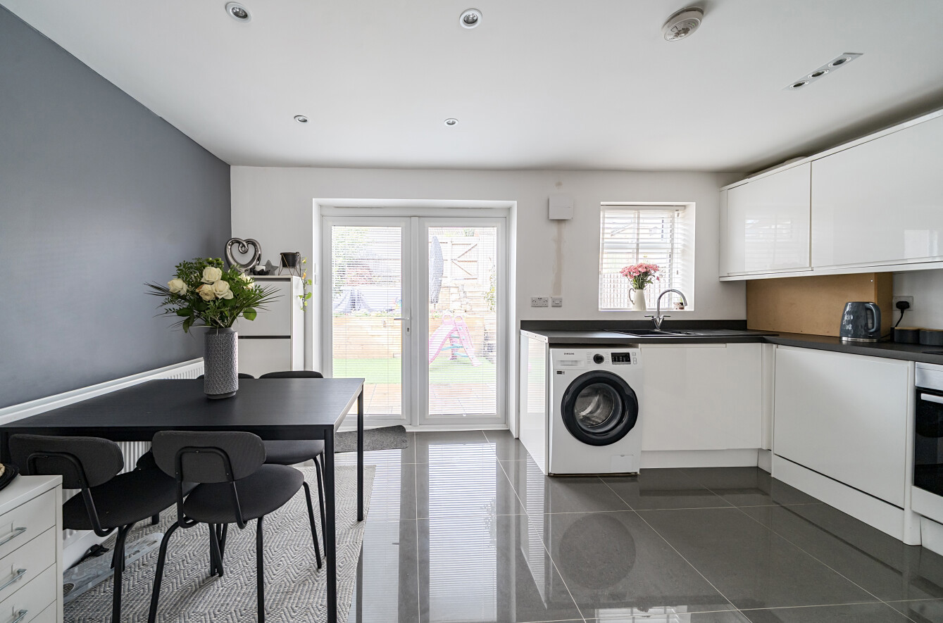 Lovingly improved by the current owners, the property has been designed with modern family life in mind, featuring a welcoming layout that is both practical and sociable. The entrance porch opens into a bright and inviting sitting room, a cosy spot to relax at the end of the day. From here, the home flows effortlessly into the spacious open-plan kitchen/dining area – the true heart of the house – which enjoys views over the rear garden and provides the perfect setting for family mealtimes and entertaining guests.