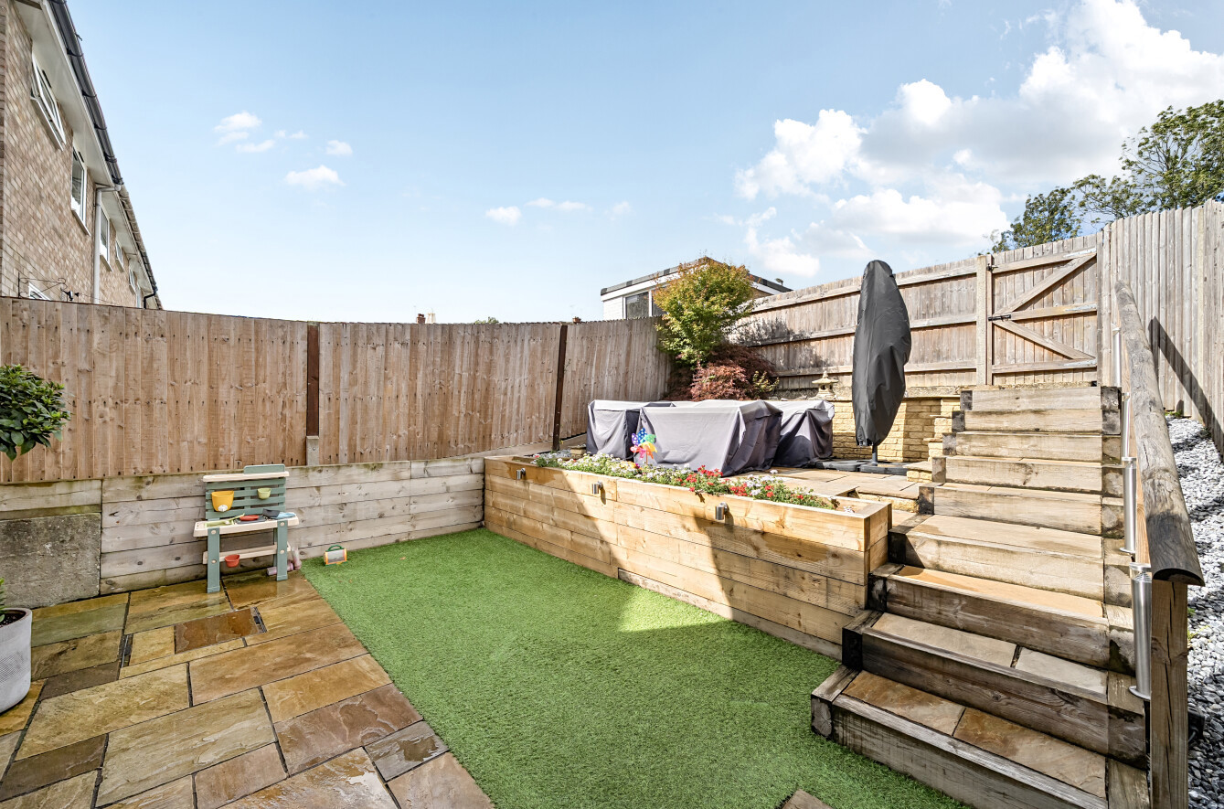Outside, the private rear garden has been thoughtfully landscaped for low maintenance while offering an elegant space for outdoor dining and summer gatherings. Beyond the garden, the property also benefits from the rare advantage of off-road parking for two vehicles.