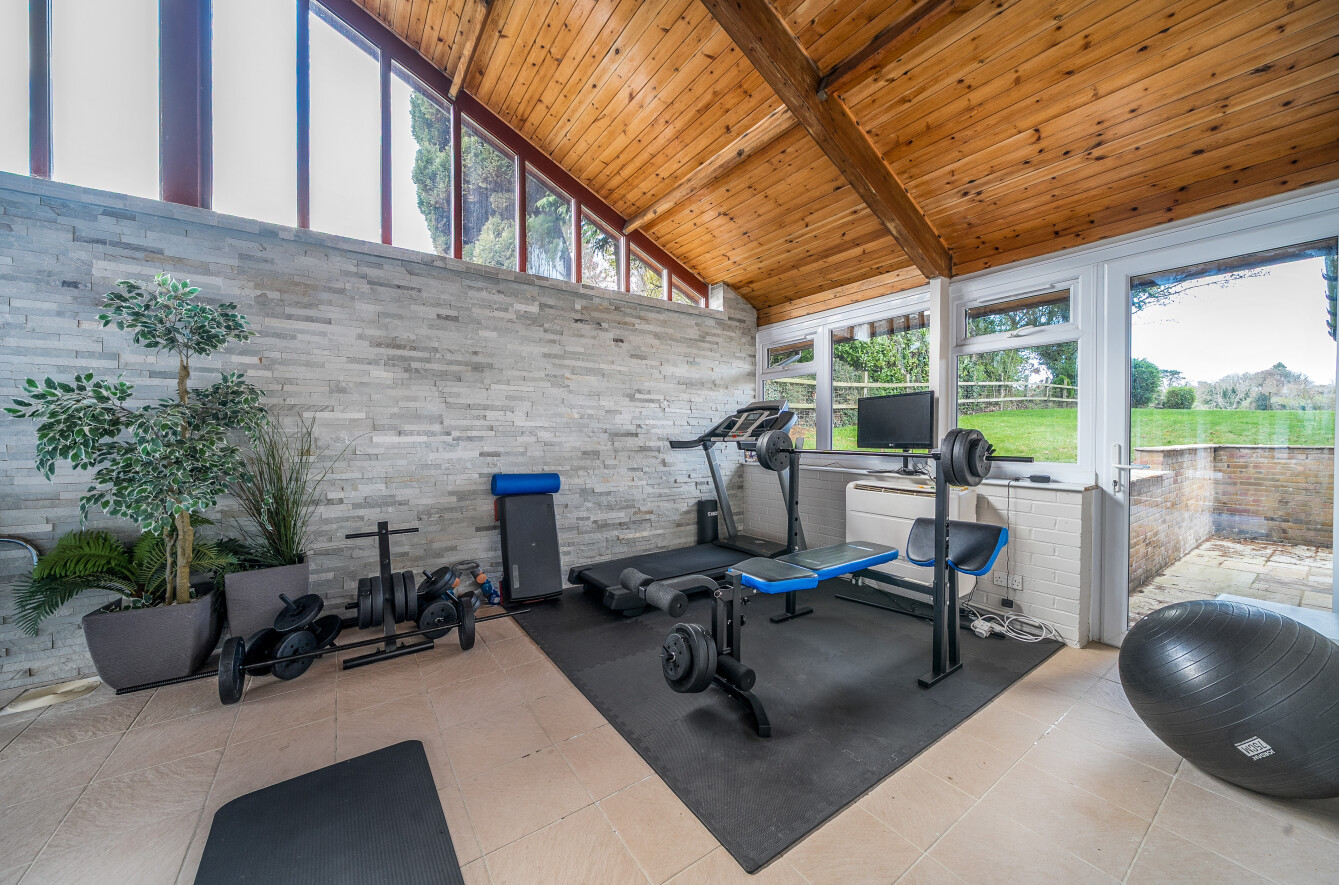 Externally, the sweeping driveway leads up to an integral double garage equipped with power and light, with a spacious plant room and store situated behind. The gardens are truly an oasis of tranquillity, featuring mature trees and planting that ensure privacy. The large internal courtyard terrace serves as the ideal spot for alfresco socializing, linking with the pool activities during the summer months. Far-reaching views over beautiful Hampshire countryside in the distance to the rear perfectly complement this incredible home.