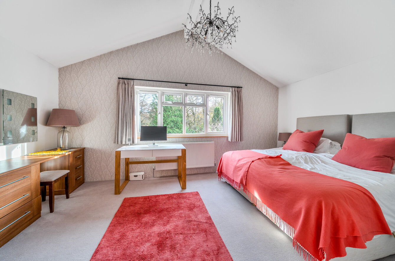 The sleeping quarters are equally impressive and versatile. There are a total of five bedrooms, with an additional sixth bedroom or study, as well as a further first-floor study for home working. The principal bedroom is situated towards the rear of the property to maximize privacy; it enjoys a stunning garden aspect, a walk-in dressing room, and a luxurious en-suite. The bathroom fittings throughout the property are of an exceptional standard and style.