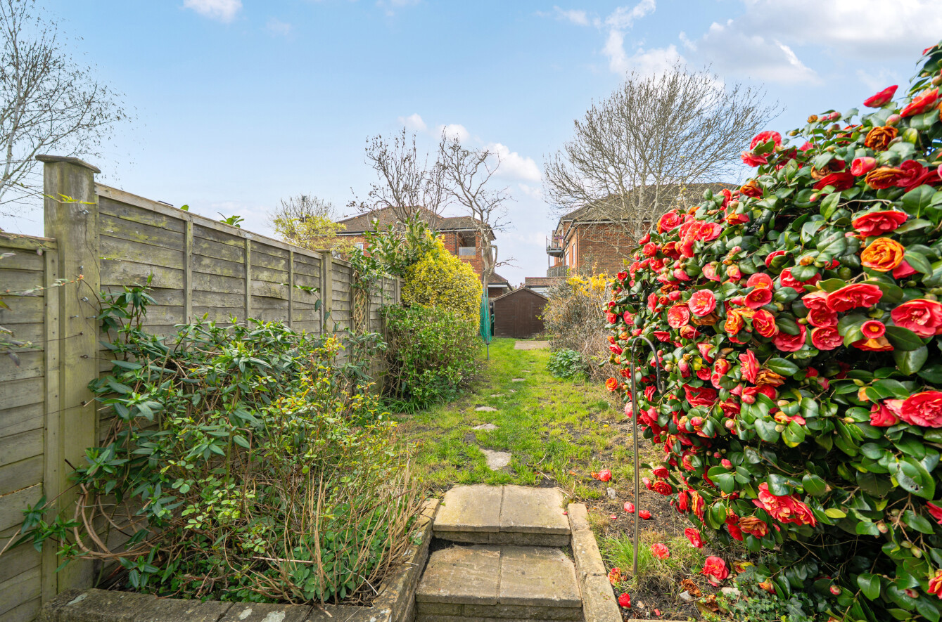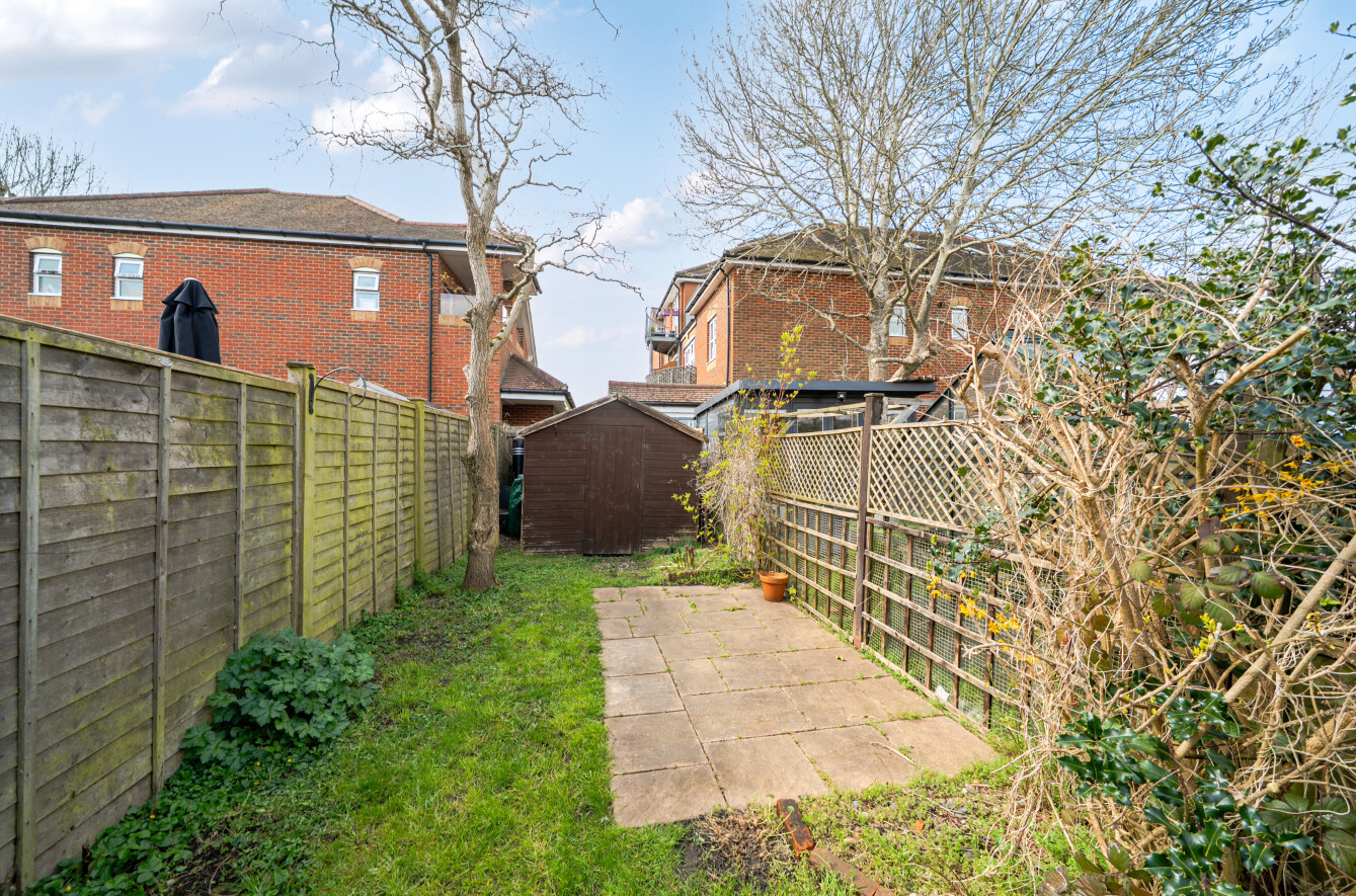 Outside, the secluded rear garden is predominantly laid to lawn and enhanced by well-stocked herbaceous borders and mature planting. With both upper and lower terraces, it provides the perfect setting for outdoor entertaining during the warmer months, along with a generously sized shed.