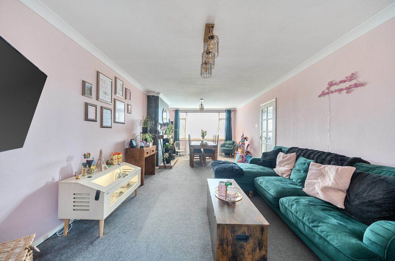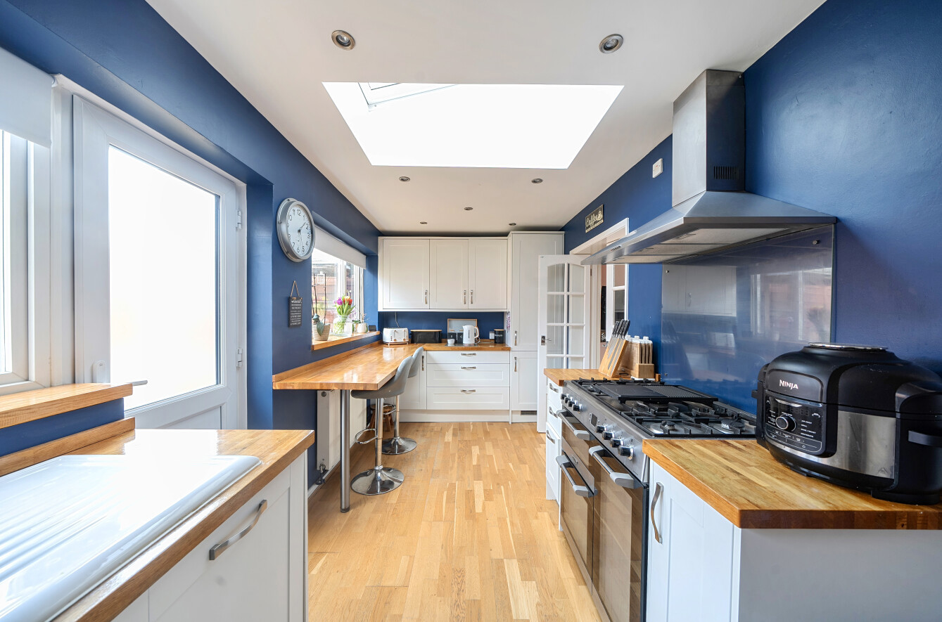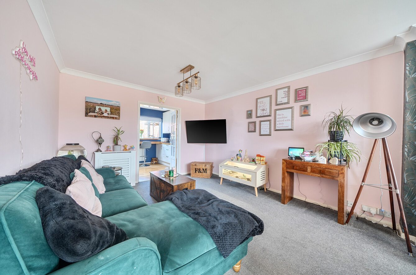 Stepping inside, you are welcomed by a spacious entrance hallway that leads through to a bright and airy sitting/dining room. A large front-facing window fills the space with natural light, while a charming wood-burning stove creates a cosy and inviting atmosphere, the perfect place to unwind.