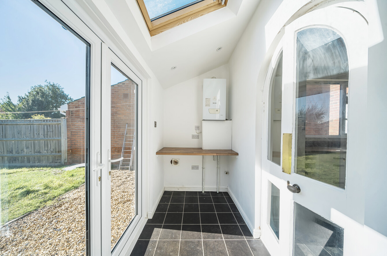 To the rear, there is a modern fitted kitchen, with fitted wall and base units providing ample storage space. There is also a range of integrated appliances and further space for freestanding ones. The kitchen opens to a handy utility area which offers space for a washing machine and dryer and French doors opening to the garden.