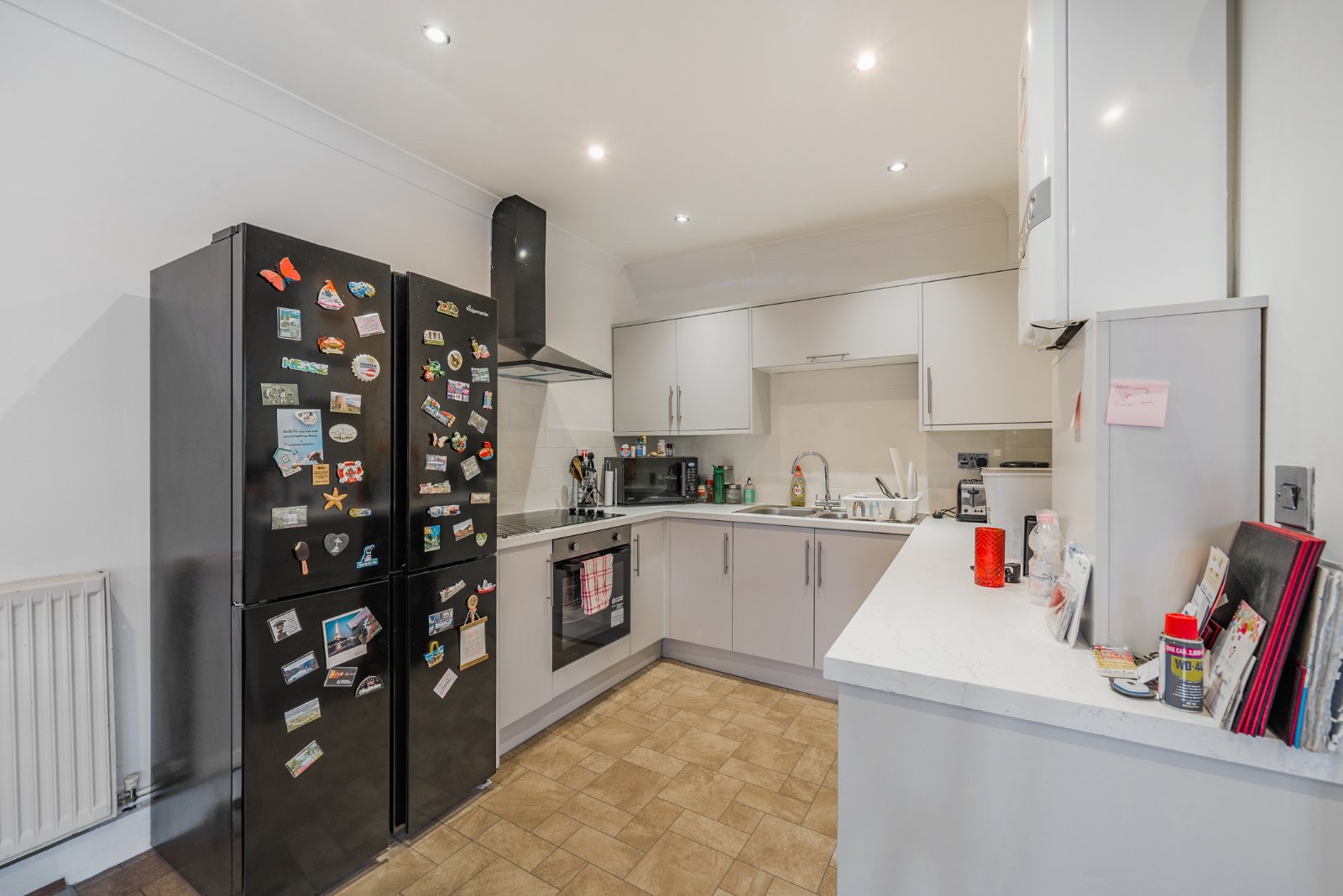 Entering through the porch you continue into the spacious open-plan living area. At one end you have the newly fitted kitchen with white storage cabinets and complimentary work surfaces with a built-in oven and hob with extractor fan over and a stainless steel sink and drainer. The living area is large enough for both a dining table and seating area with double doors opening out to the garden. The doors and bay window let lots of natural light fill this lovely space.