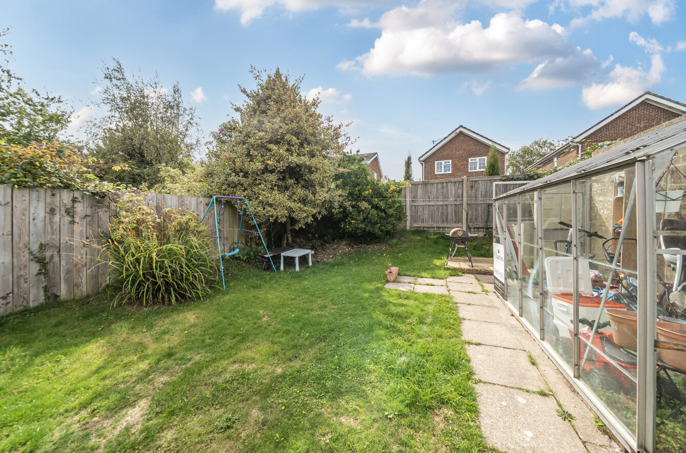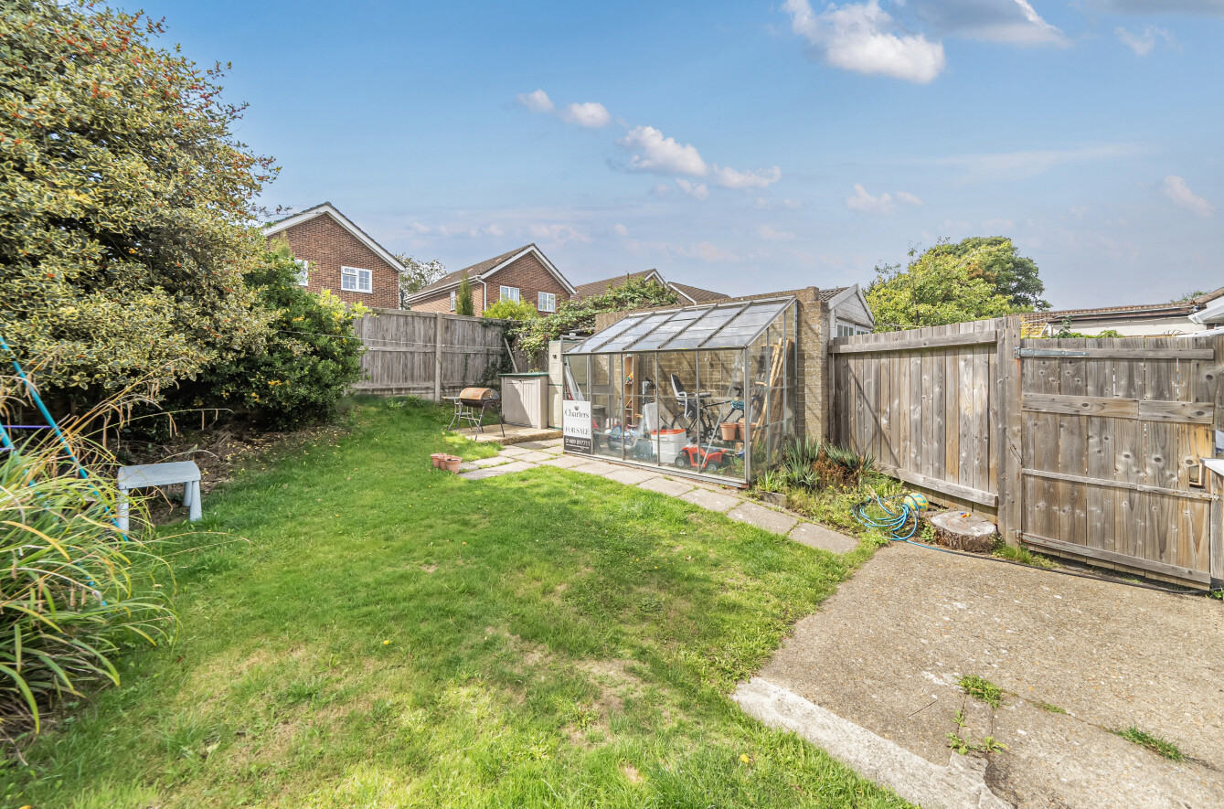 Externally, a gravelled driveway provides off-road parking and side access leads to the rear. The sunny, private garden is a real highlight, with a paved terrace for seating, a lawn bordered by fencing, and a greenhouse to remain.