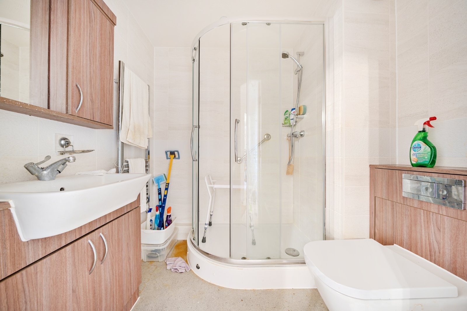 The apartment is arranged on a single level and features an open-plan living and dining area that flows seamlessly into a fully fitted kitchen. The master bedroom is a generous double, complete with built-in wardrobes, and the modern shower room offers both comfort and convenience.