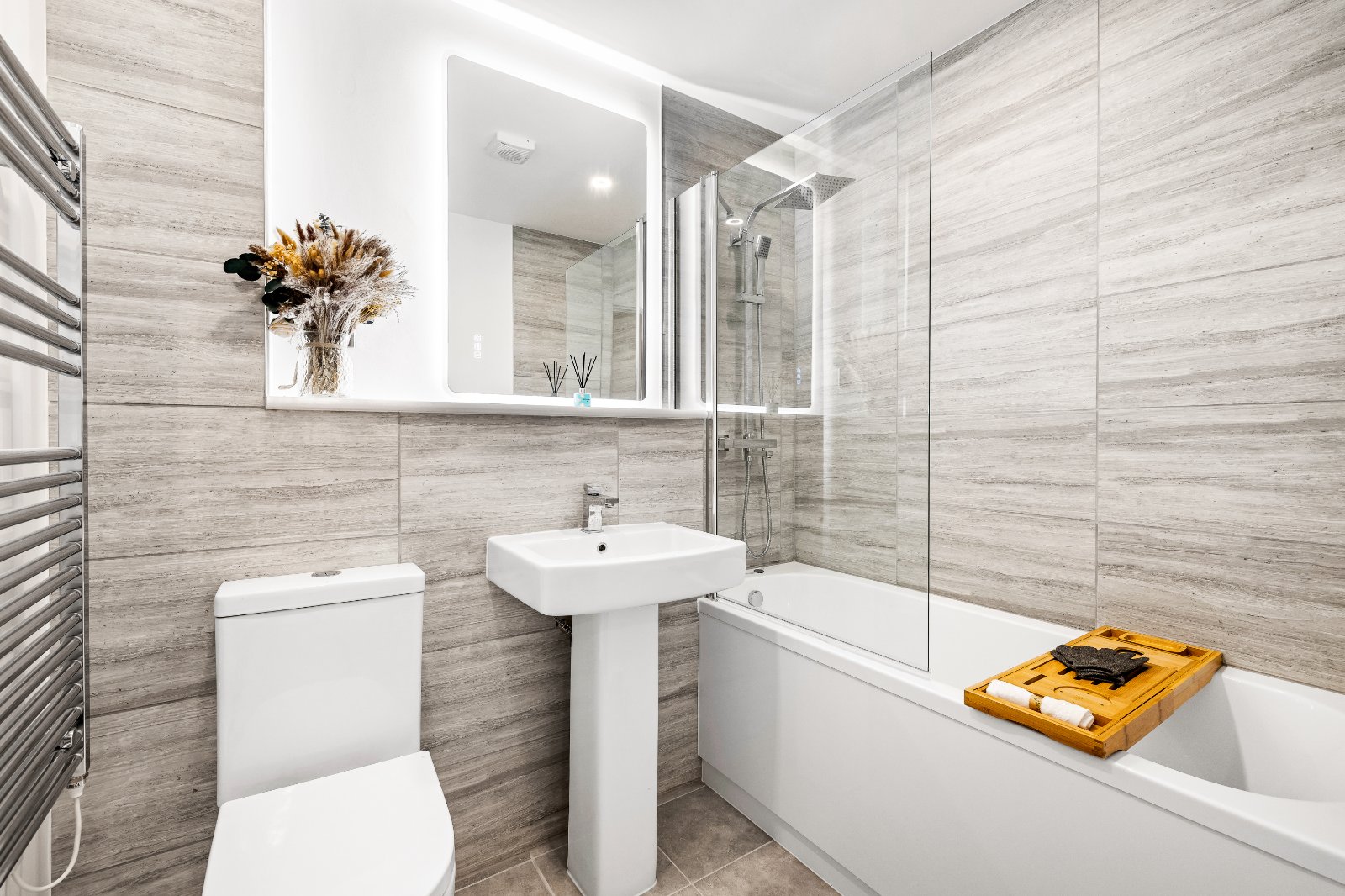 Within the apartments, an open and airy layout is provided and complimented by streamlined kitchen cabinetry, quality wood effect flooring, modern finishes and brand new appliances to complete the apartments’ contemporary aesthetic.
