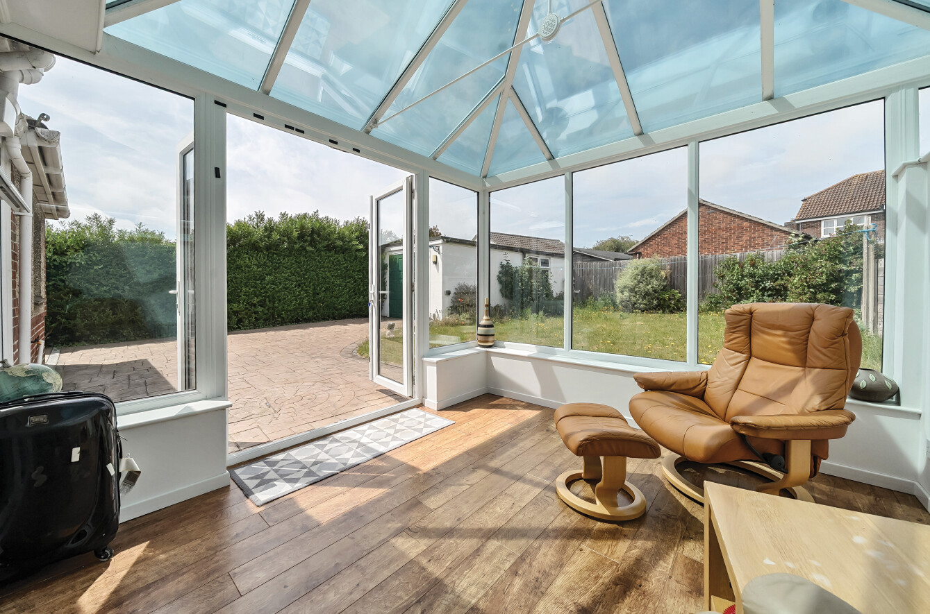 At the rear, a conservatory opens out to the garden, providing a peaceful spot to enjoy the outlook year-round. The property is further complemented by a single detached garage, ample off-street parking, and a generous, well-maintained rear garden – ideal for families, gardening enthusiasts, or those simply seeking outdoor space.