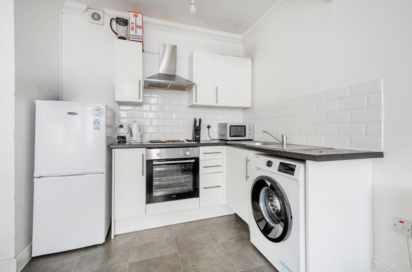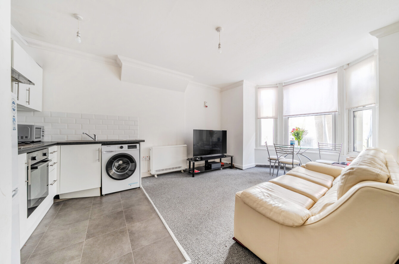Extending to approximately 427 sq ft, the flat features a bright and spacious open-plan kitchen/sitting room with an attractive bay window that fills the space with natural light. The layout provides clearly defined living and dining areas while maintaining a sociable, modern feel. The double bedroom is comfortably sized, and the bathroom is neatly arranged, making the apartment practical and easy to maintain. The ground floor position adds convenience and accessibility, further enhancing its appeal.