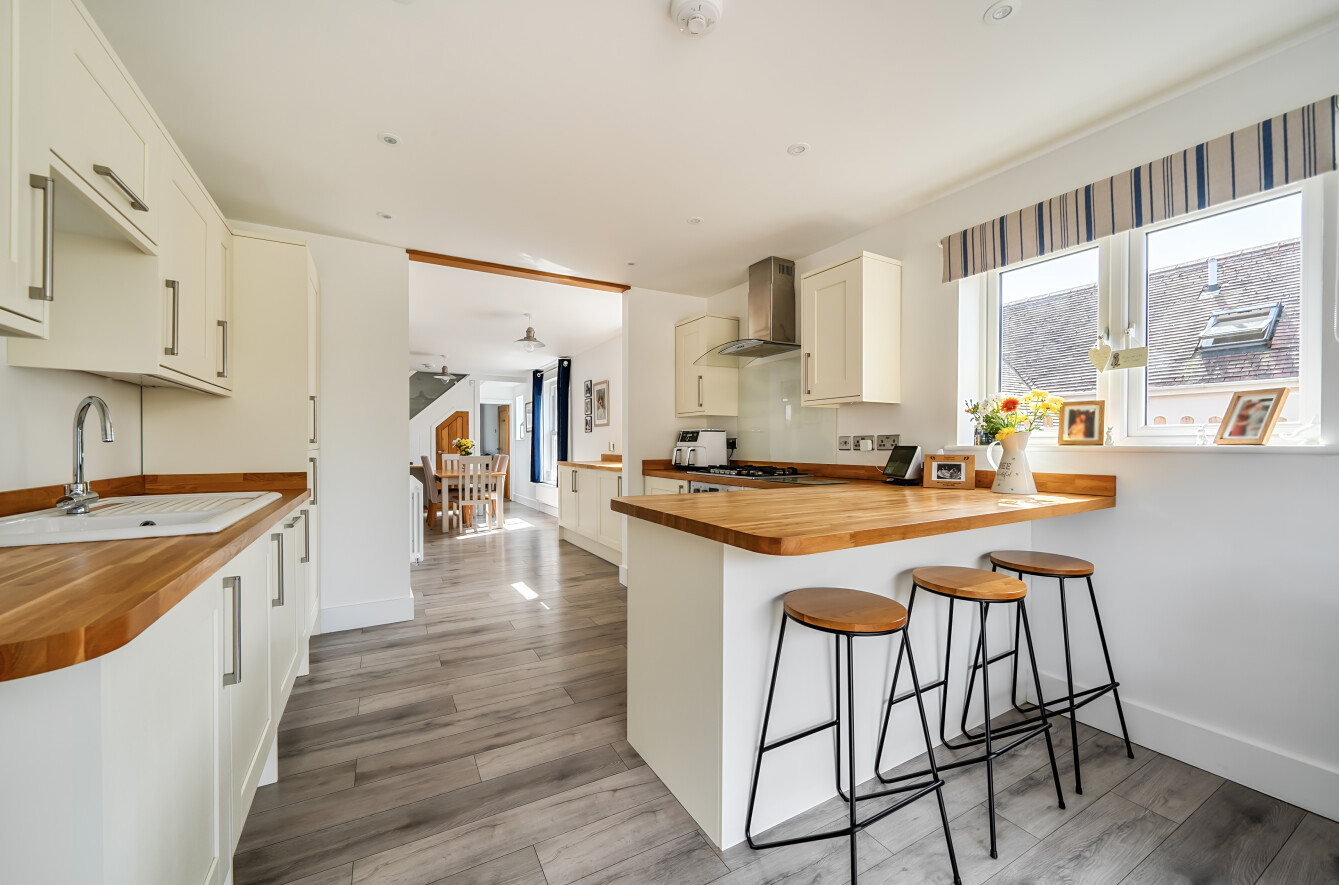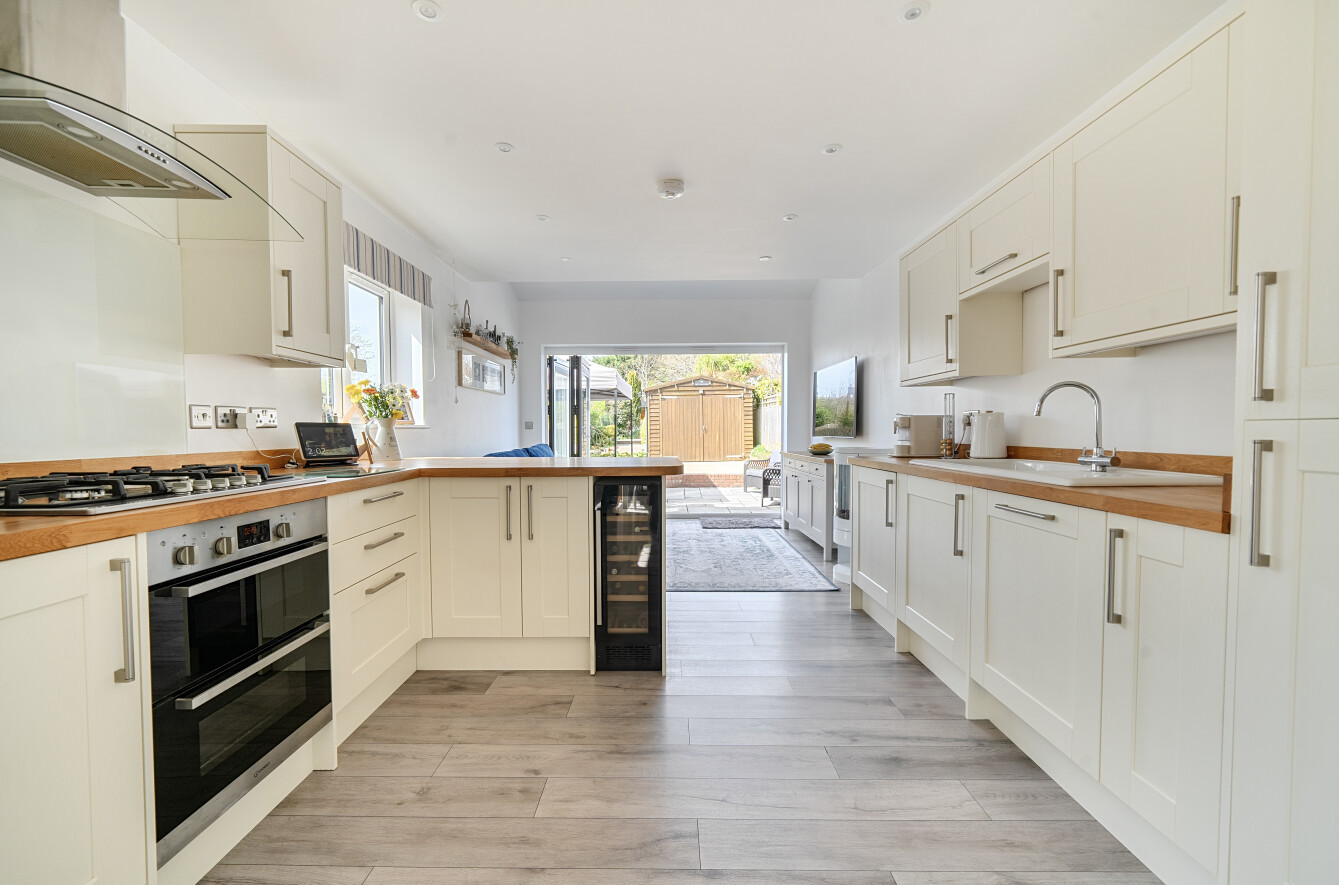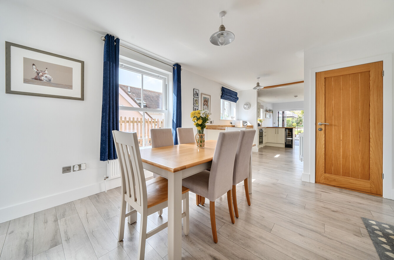 Offering well-proportioned rooms over two floors and ample outside space, this property is one not to be missed. The ground floor includes two impressive reception rooms, and is entered via the dining room, with stairs to the first floor. To the front of the property is the cosy sitting room, a perfect space for relaxation. The heart of the home is the bespoke fitted kitchen/ family room with bi-fold doors leading onto the rear garden. A useful cloakroom completes the ground floor accommodation.