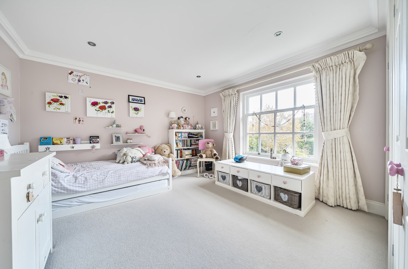 A central island is located to guarantee this is the family hub of the home. The dual aspect sitting room is generous in size with a beautiful bay window offering views over the delightful gardens. Currently used as a playroom, the front facing reception room has multiple uses.