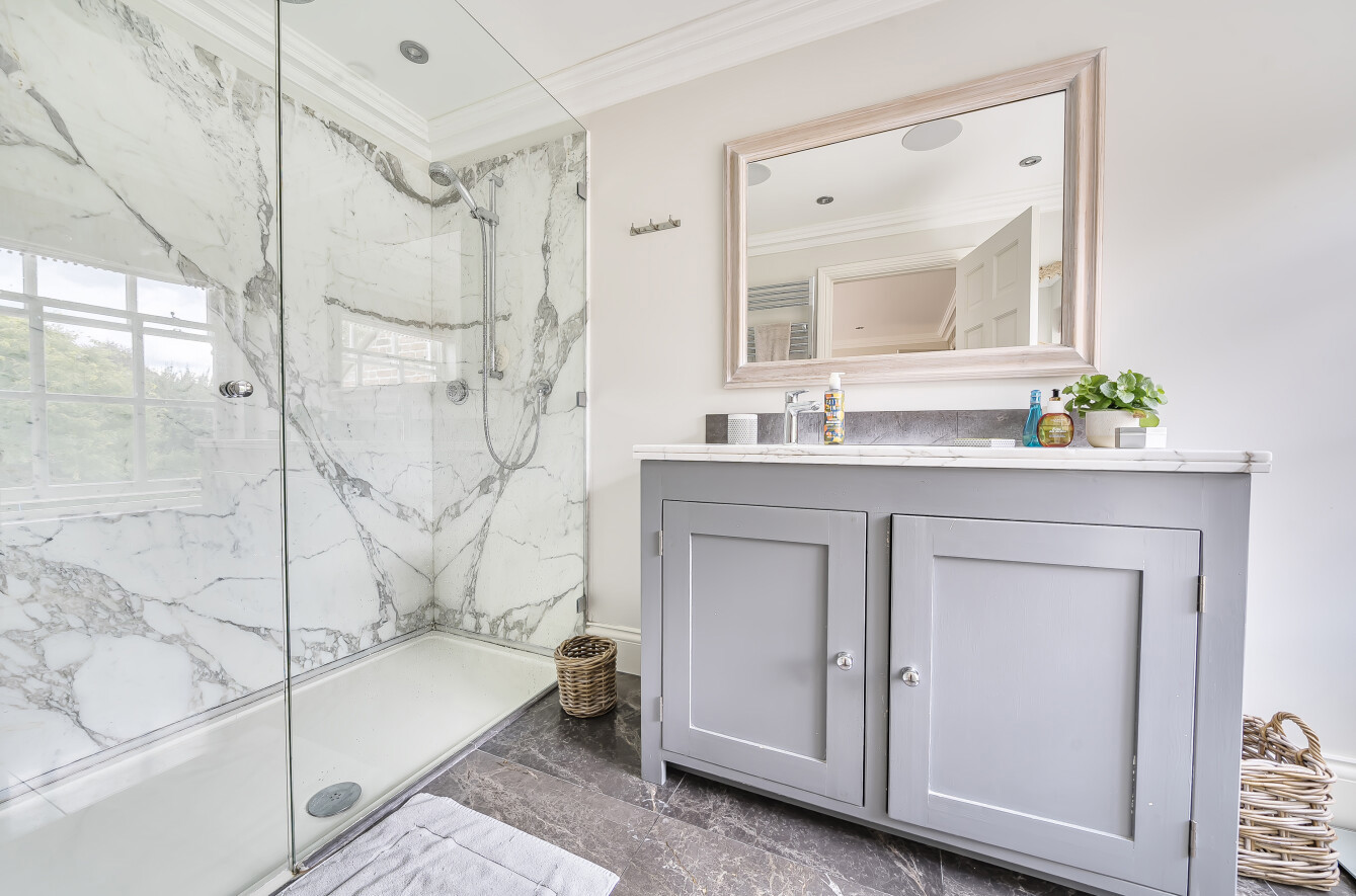 The stunning principal bedroom includes two vast walk-in wardrobes and en-suite shower room. The two additional bedrooms on the first floor are served by a contemporary family bathroom. Stairs rise to the second floor where two mirror image double bedrooms sit either side of a bathroom and large storage room.
