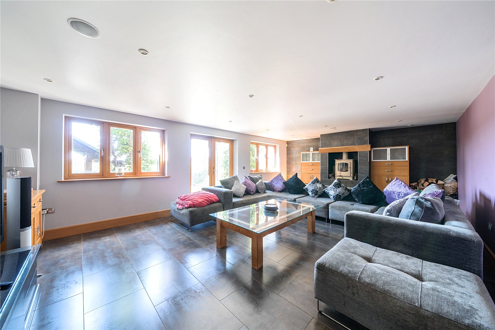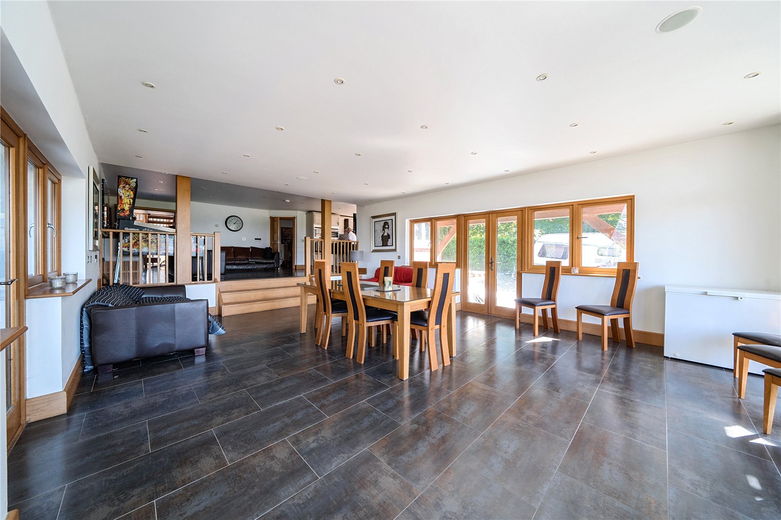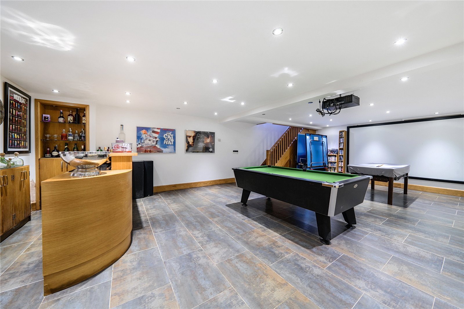 Approaching the home via the gated entrance the immense shingled driveway engulfs the home with parking for mutiple vehicles. The wooden storm porches greets you into the home and immediately your eyes are drawn to the rear of the home and the gorgeous views. The highlight of the ground floor is the kitchen/breakfast room and dining area. Befitting for all family sizes or entertaining guests the space is tremendous. The kitchen is accompanied by a utility and store room. Three further reception rooms service the ground floor and two of these are flexibly used as ground floor bedrooms. The utility room offers access to the cloakroom and also stairs leading to the lower ground floor entertainment room. A bar area, snooker table and cinema screen are all examples of how the entertainment room has been filled.
