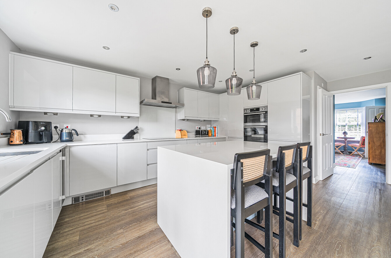 The sitting room displays superb natural light with captivating views across the garden. Two additional reception rooms can be found towards the front of the home and both are flexibly used as a reading room and gym area. A guest cloakroom completes the ground floor.