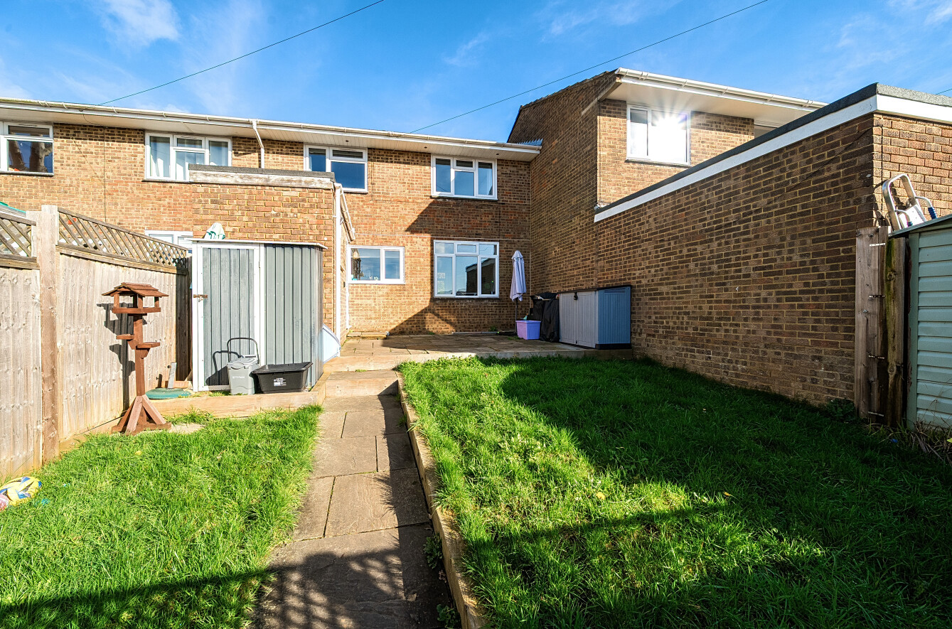 Externally, the rear garden enjoys a good degree of privacy and is predominantly laid to lawn, making it ideal for children, pets, or outdoor dining. A rear gate provides direct access to the parking area located immediately behind the property.