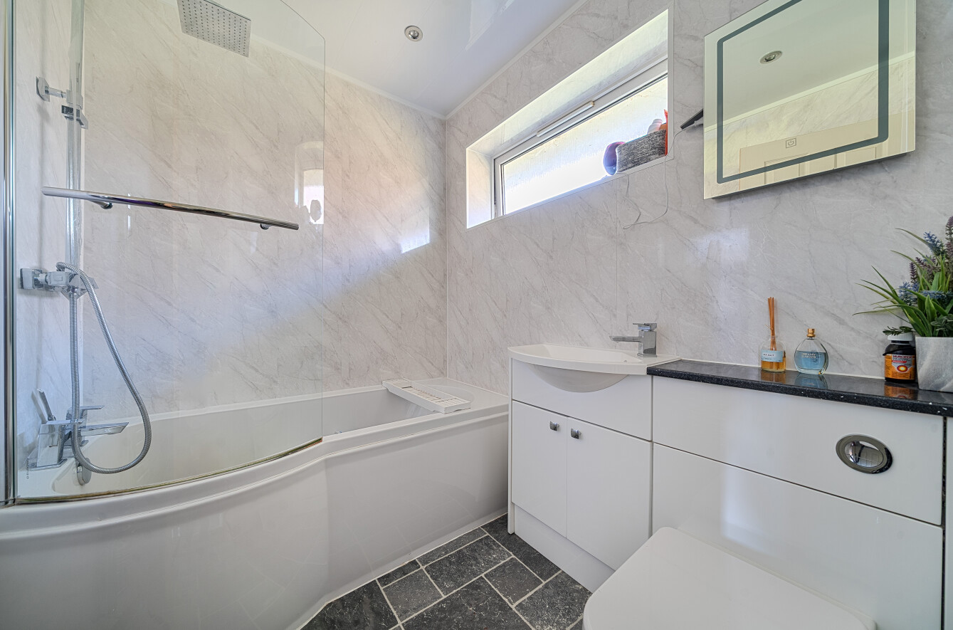 Upstairs, there are three well-proportioned bedrooms. The principal and second bedrooms both benefit from floor-to-ceiling fitted wardrobes, delivering excellent built-in storage. A modern, well-appointed family bathroom completes the first-floor accommodation.