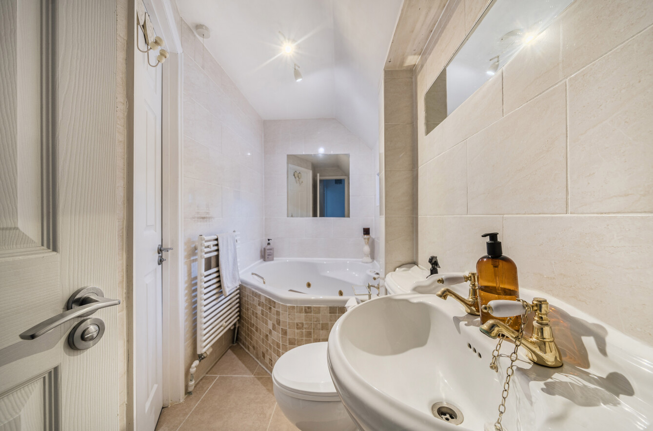 Five bedrooms await on the first floor, two of which benefit from en-suite facilities and the remainder are served by the modern family bathroom. The principal bedroom provides views over the serene rear garden and features a comfortable, stylish en-suite bathroom.