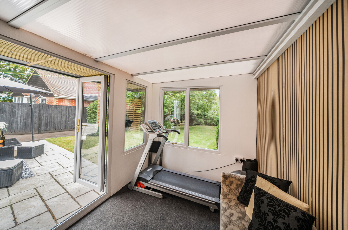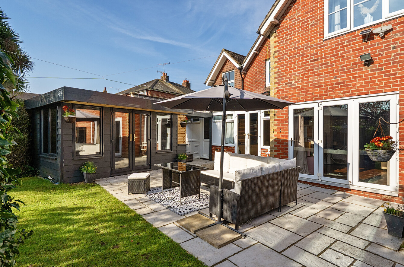 Externally the fabulous rear garden is predominantly laid to lawn with mature shrubs and trees, and the large patio terrace is perfectly positioned for the best of the summer sun. A versatile garden room provides options for a home gym or office if desired. A driveway stretches to the rear and provides access to the double garage, office and storage room. The front of the home also offers the ability to park multiple vehicles.