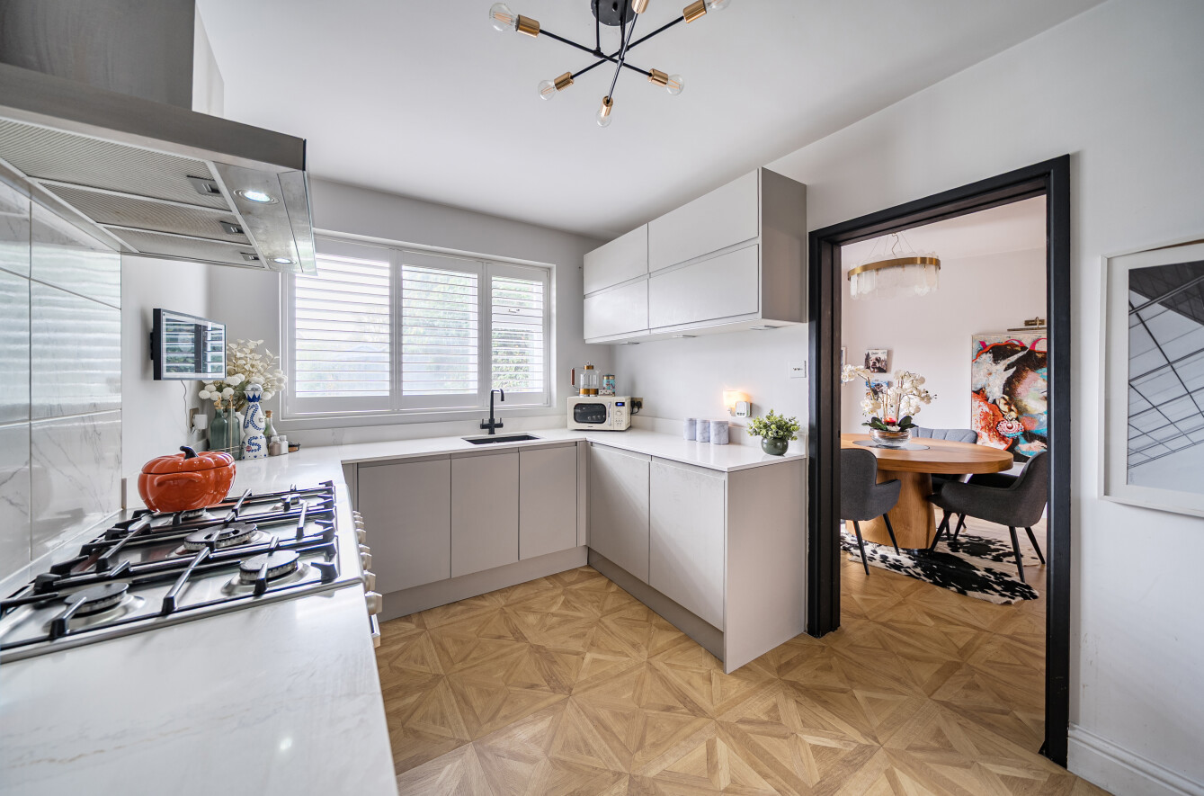 Vastly extended, the home now includes a gorgeous living and dining room, perfect for entertaining guests. A modern kitchen fitted with high-quality appliances completes the bungalow’s accommodation.