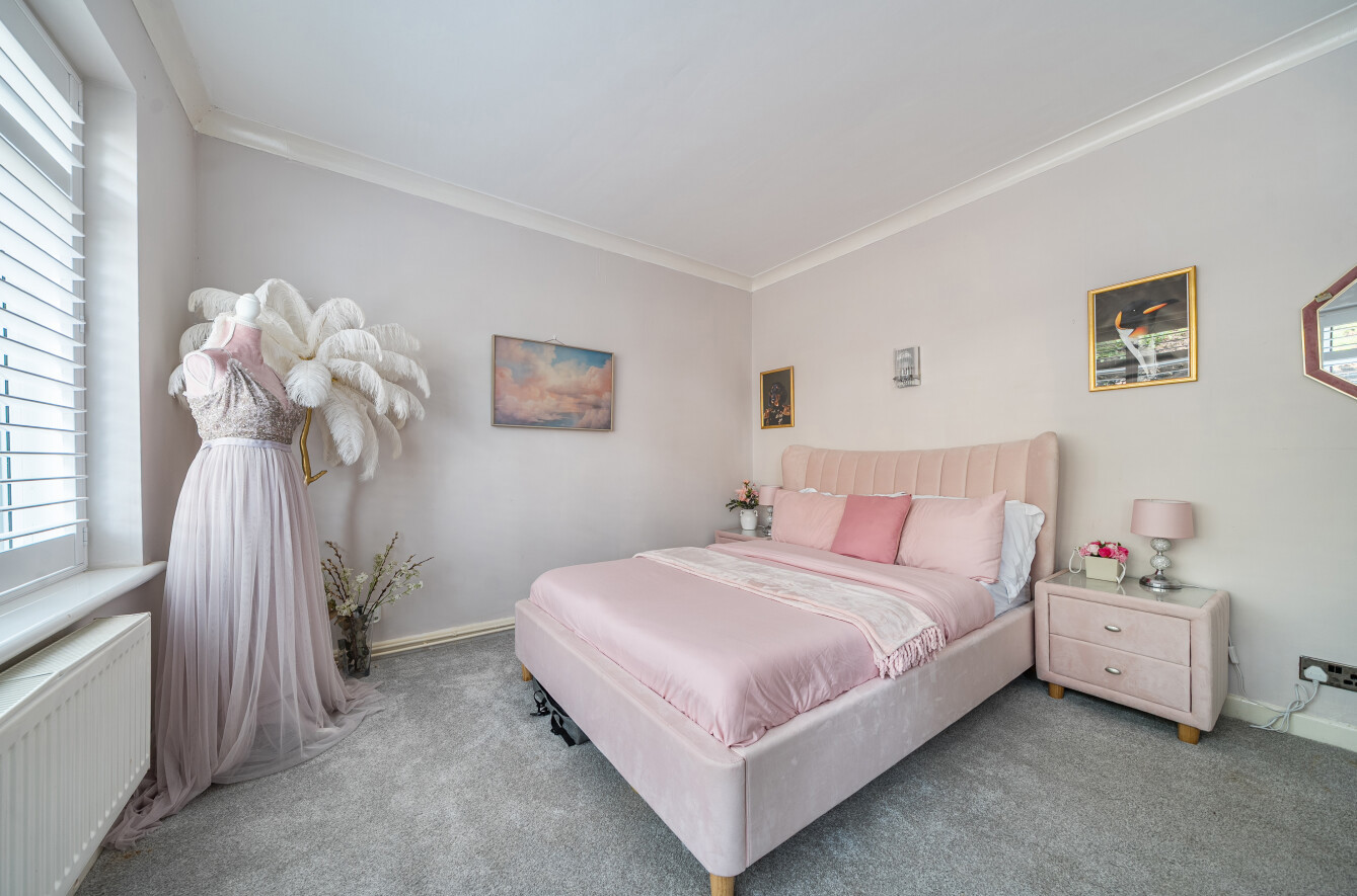 A large entrance hall provides access to the front-facing double bedrooms, both featuring charming bay windows. The stunning master bedroom has been enhanced to include a dressing room and en-suite bathroom. A single bedroom offers versatility, ideal for use as a nursery or study.