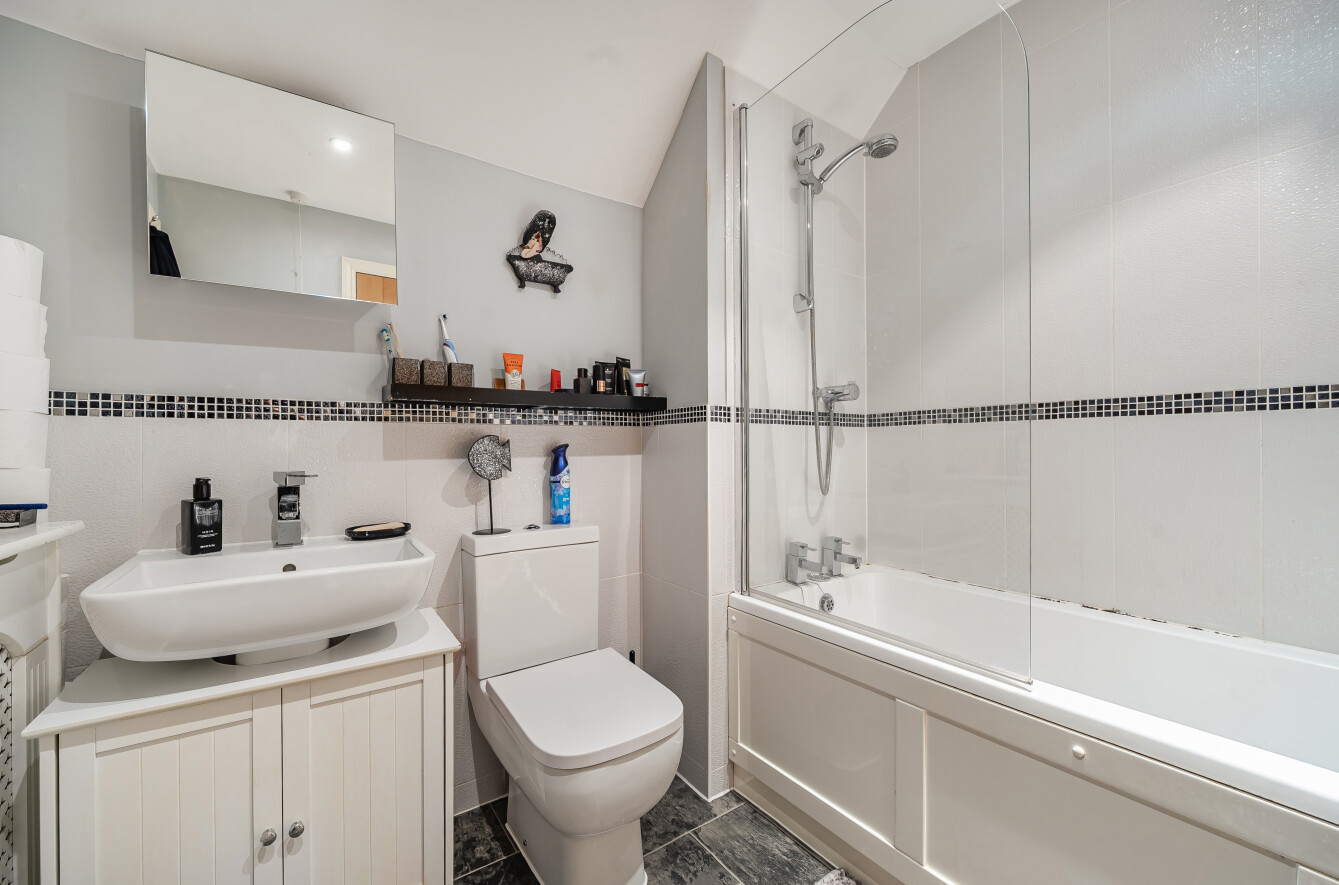 All the bedrooms are doubles, with three situated on the first floor. The versatile second bedroom has been set up as a secondary living room. The first floor is served by a generous family bathroom. The two remaining bedrooms are on the second floor, served by a guest bathroom, and could make ideal home office or hobby spaces. The rear garden has a westerly aspect with a patio area and is enclosed by brick walling. At the rear of the property, there is driveway parking for two vehicles.
