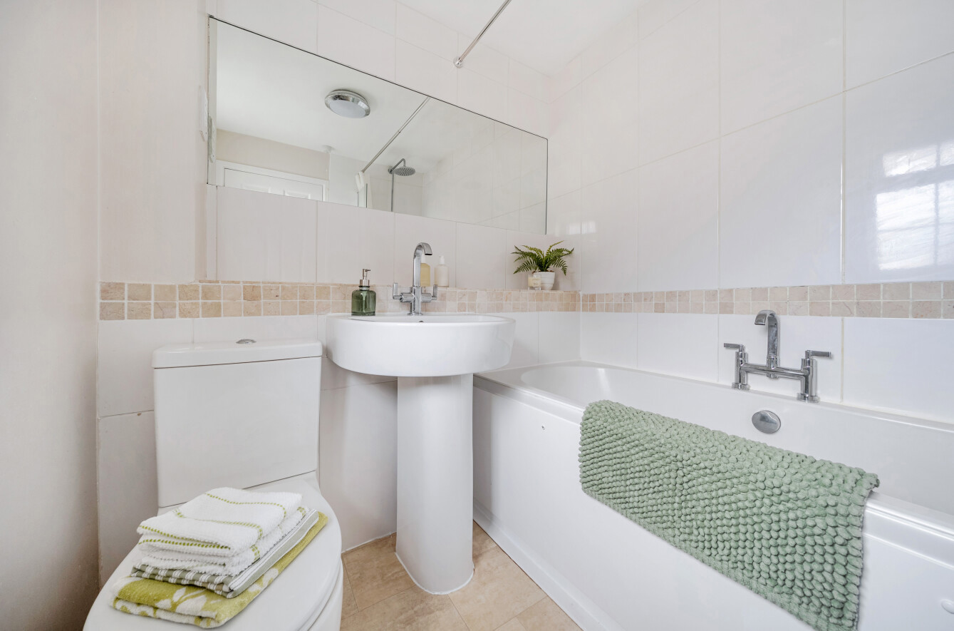 The ground floor further benefits from useful understairs storage. Stairs from the living room lead to the first-floor landing, which provides access to two well-proportioned bedrooms offering space for additional storage, along with a contemporary bathroom suite.