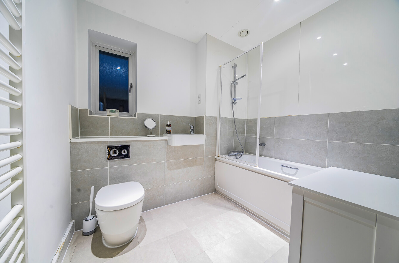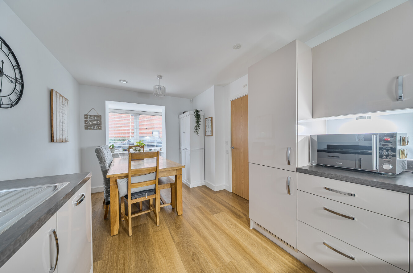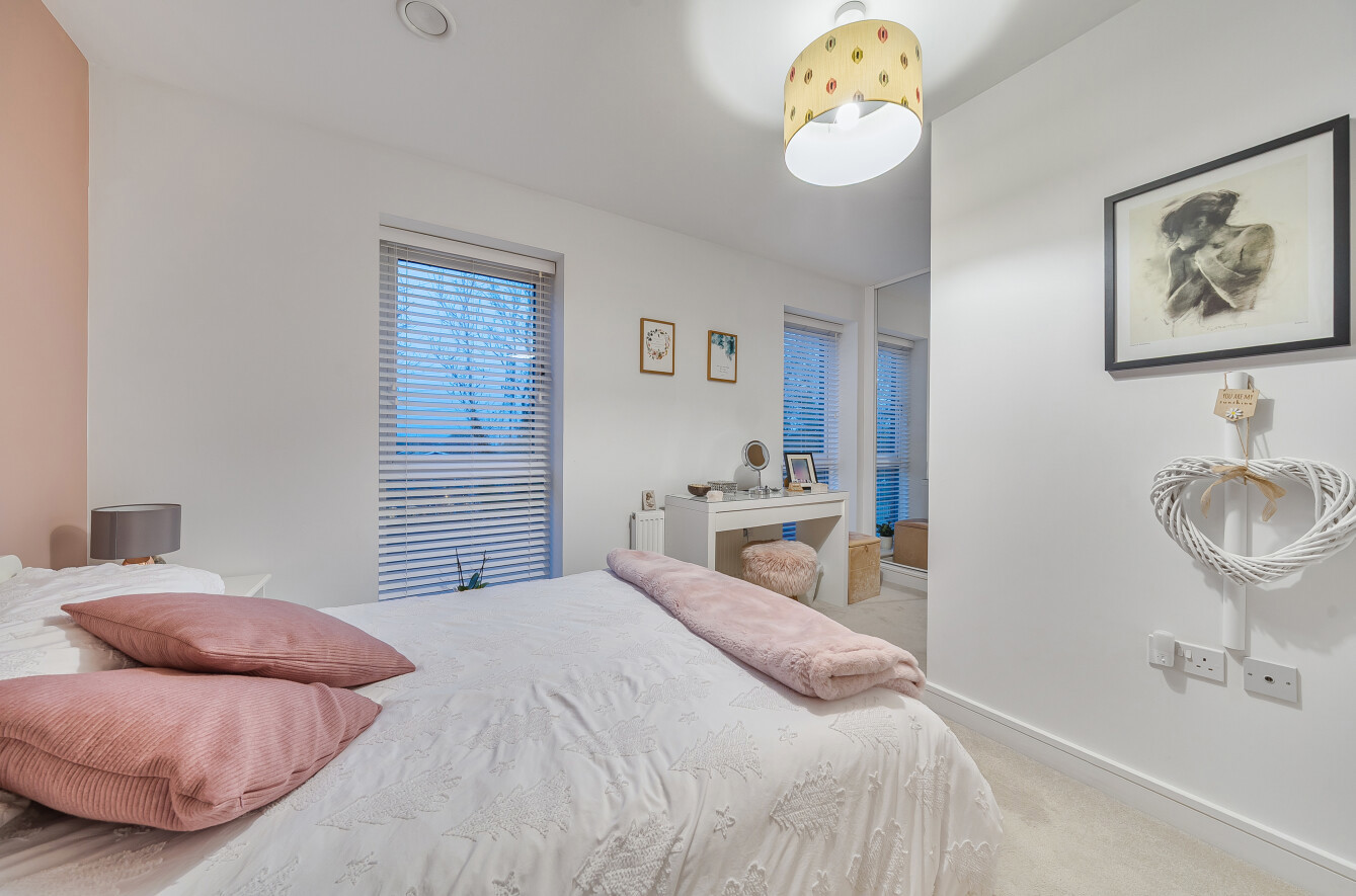 A spacious entrance hall provides access to all principal rooms. The well-appointed sitting room features a fresh, modern design with French doors opening onto the private, enclosed garden. The impressive kitchen/dining room is finished to a high standard, fully fitted with integrated appliances and clever storage solutions, and benefits from a dining area and feature bay window. A convenient guest cloakroom completes the ground floor.