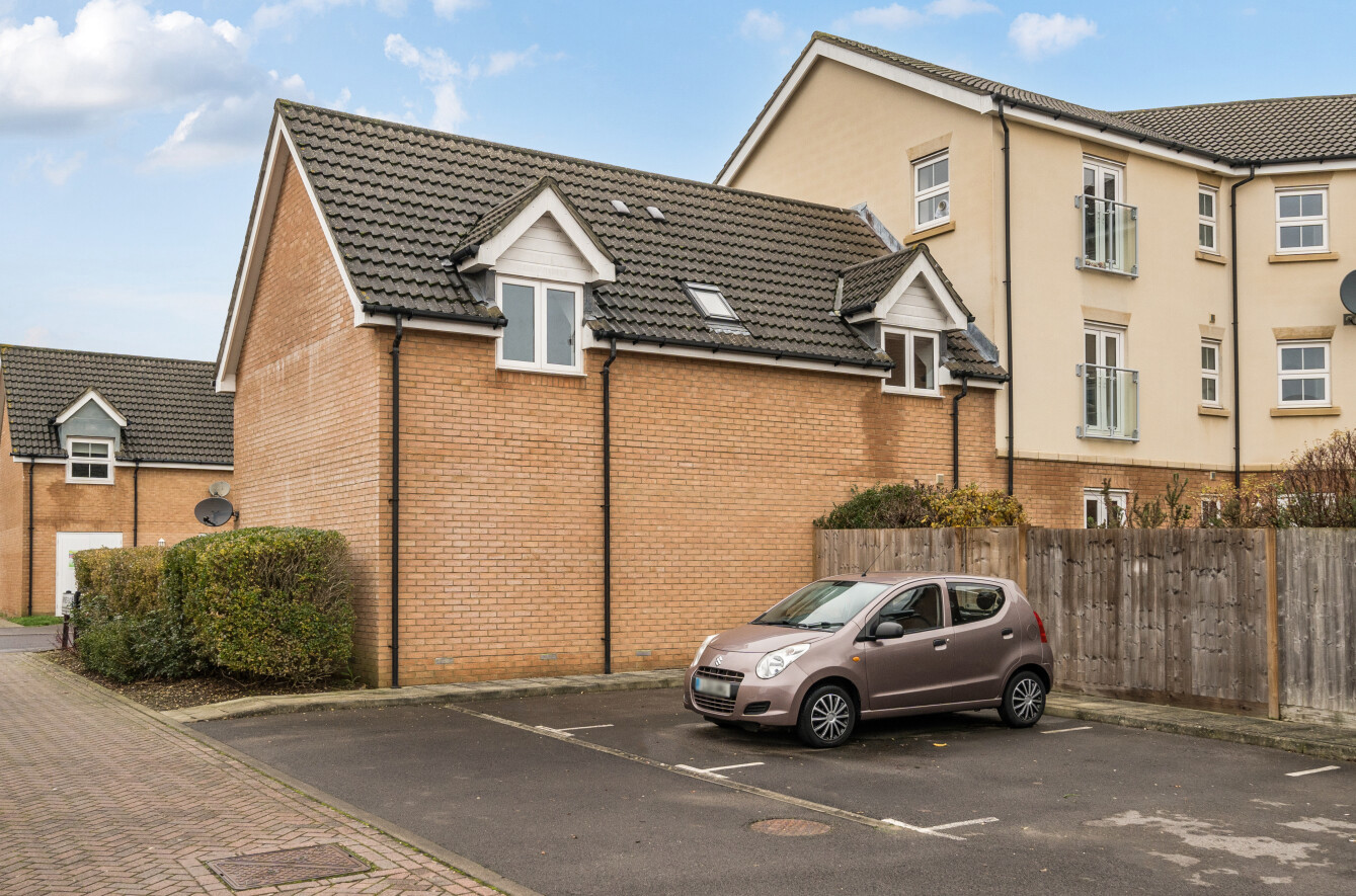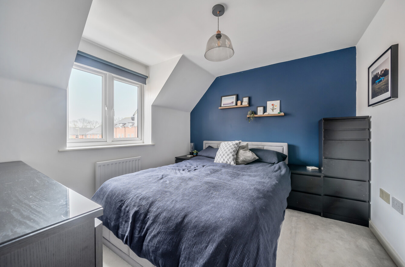 The spacious living room seamlessly connects to the kitchen, complete with an integrated cooker and a smart L-shaped layout. A large integral garage has an electric door, storage units and plumbing facilities for a washing machine. The principal bedroom offering built in wardrobes and a view to the rear. Bedroom two also has space for a double bed. The modern white bathroom includes a shower over the bath.