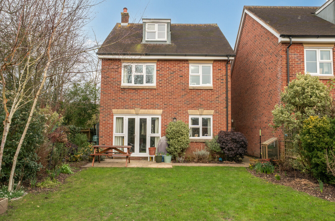 Outside of the property there is a garage and parking space to the front, and a lawned garden with side pedestrian access to the rear. The generously sized rear garden is mainly laid to lawn, with two separate patio seating areas, and all enclosed by a variety of mature trees and shrubs.