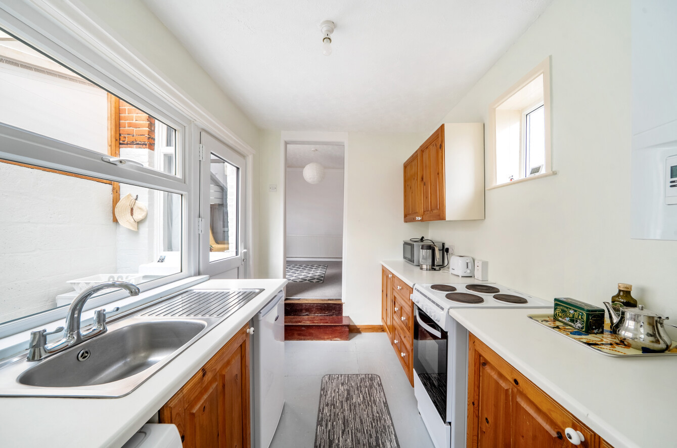 The well-presented and thoughtfully arranged accommodation which has been much loved and greatly improved by the current owners of more than twenty yeards includes a welcoming sitting room with a charming bay window to the front, and a second reception room behind—ideal as a formal dining room. The kitchen leads to a practical lean-to area and a newly fitted, sleek and stylish family bathroom.