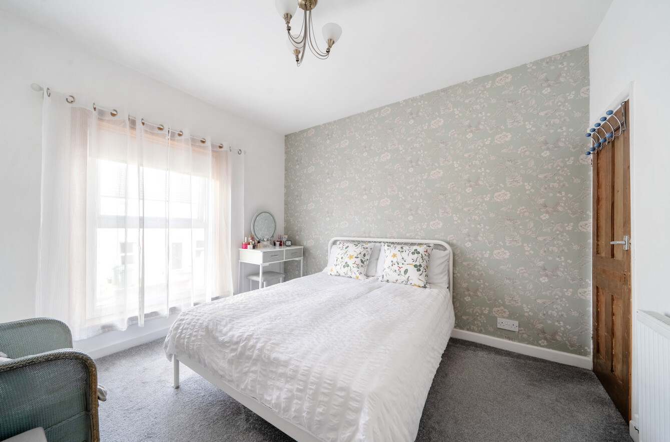Upstairs, the first floor features two generously sized bedrooms, with the principal bedroom offering useful built-in storage. In addition, there is a versatile third room that could serve as a single bedroom, home office, or walk-in dressing room.