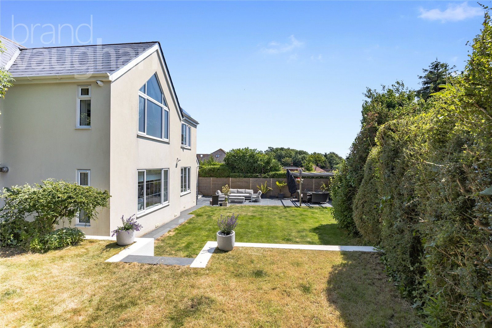 Hidden away in an exclusive leafy location, this substantial detached property is a special find. Outside has a contemporary finish with smart render, and improvements include energy efficient windows and refurbished bathrooms. There is a sheltered seating area overlooking the private front garden by the entrance where you can watch for the school bus and inside, the broad hallway has plenty of space for boots and bags, a w.c. for visitors discreetly tucked away and high grade oak flooring allows a fuss free flow.