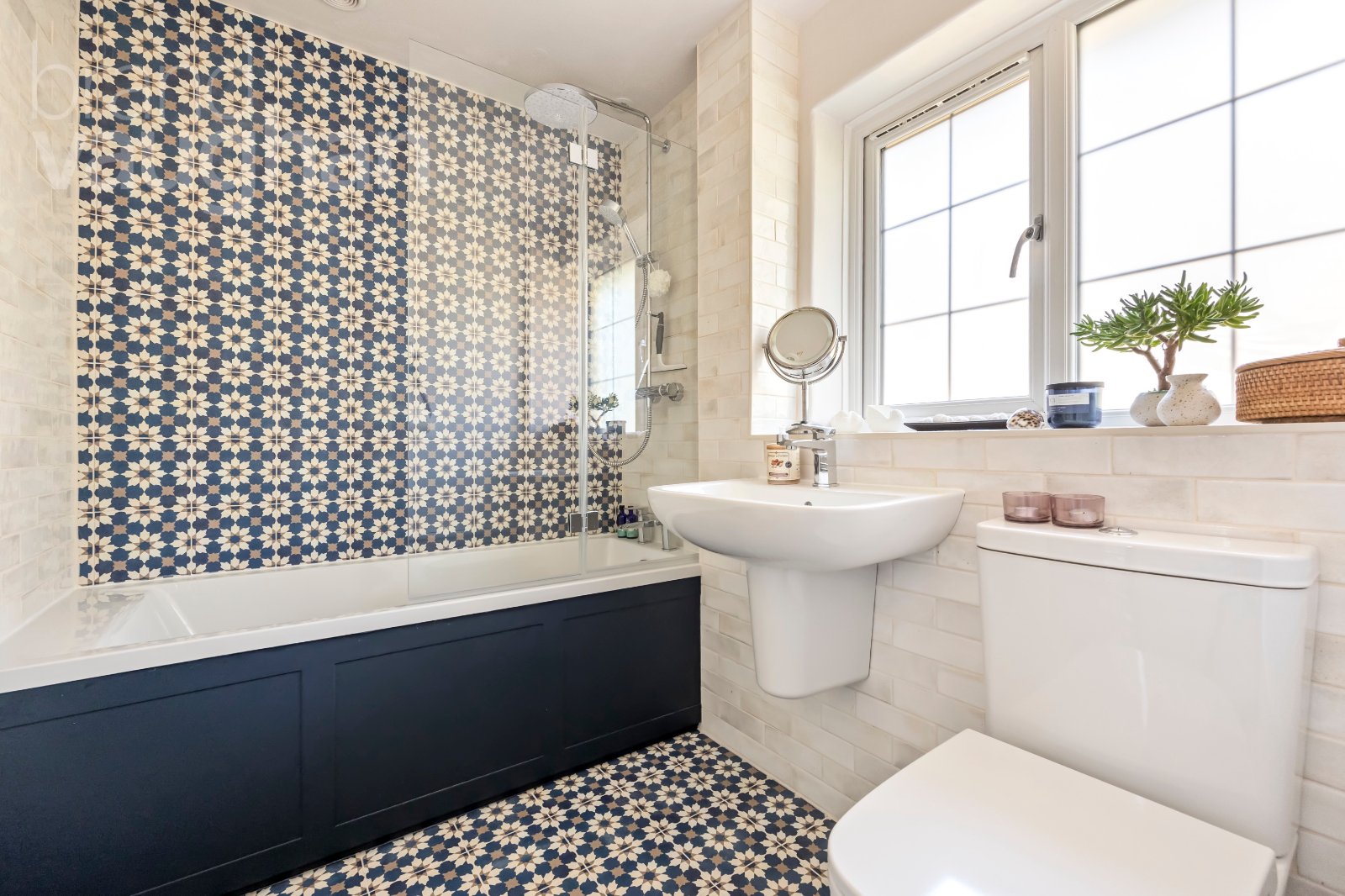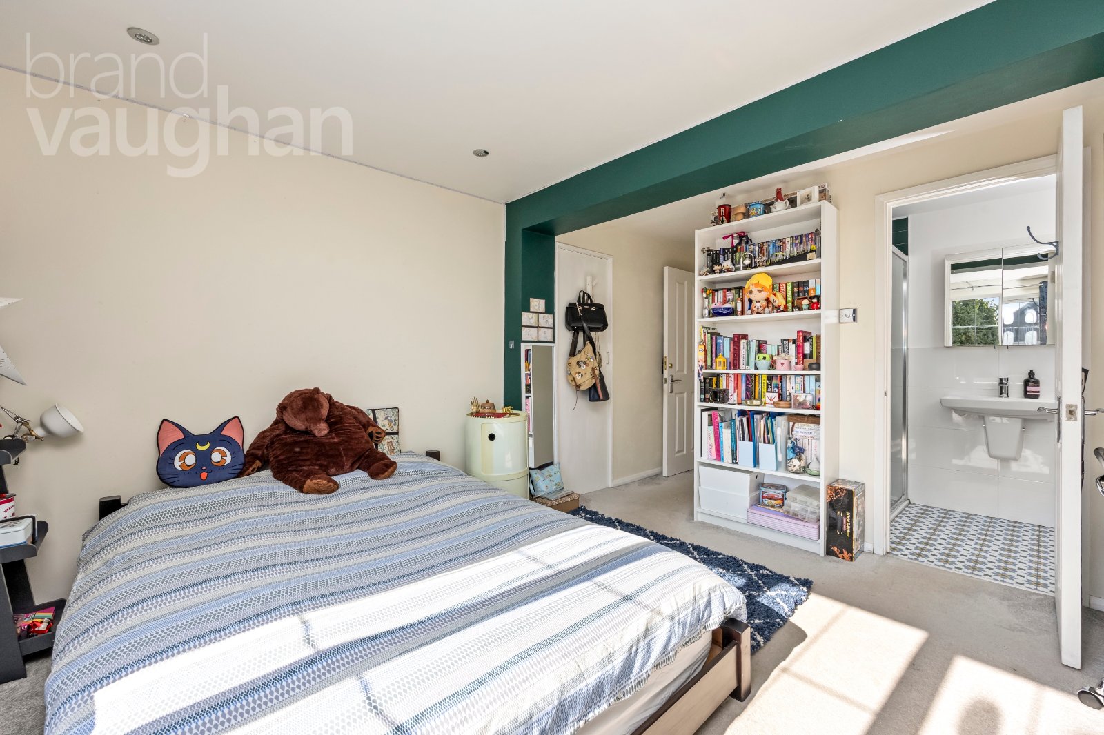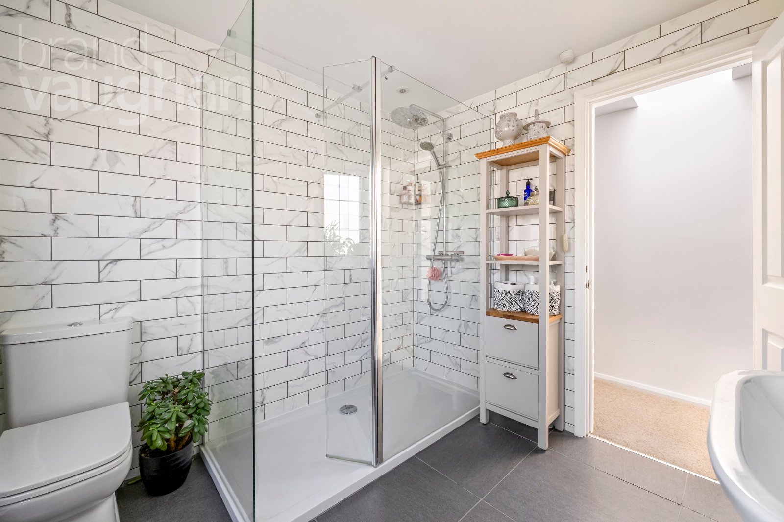 Next door, the luxury bathroom is, in effect, an en-suite for the principal. Fully refurbished in late 2025 with a fabulous finish, there’s a dual head Grohe shower over the bath, large hand basin, warming rail for towels and discreet storage.