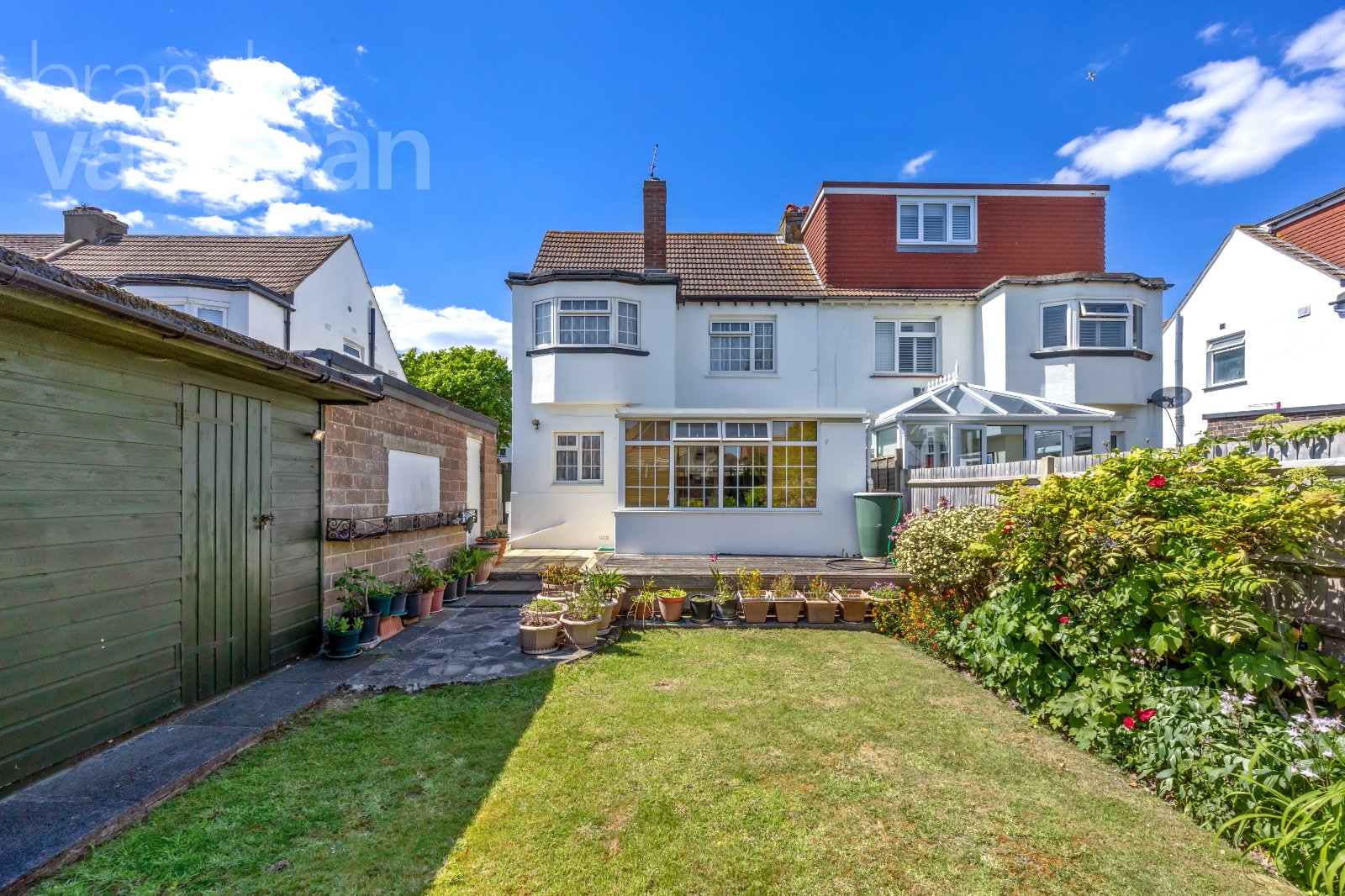 Outside: East and southerly rear garden